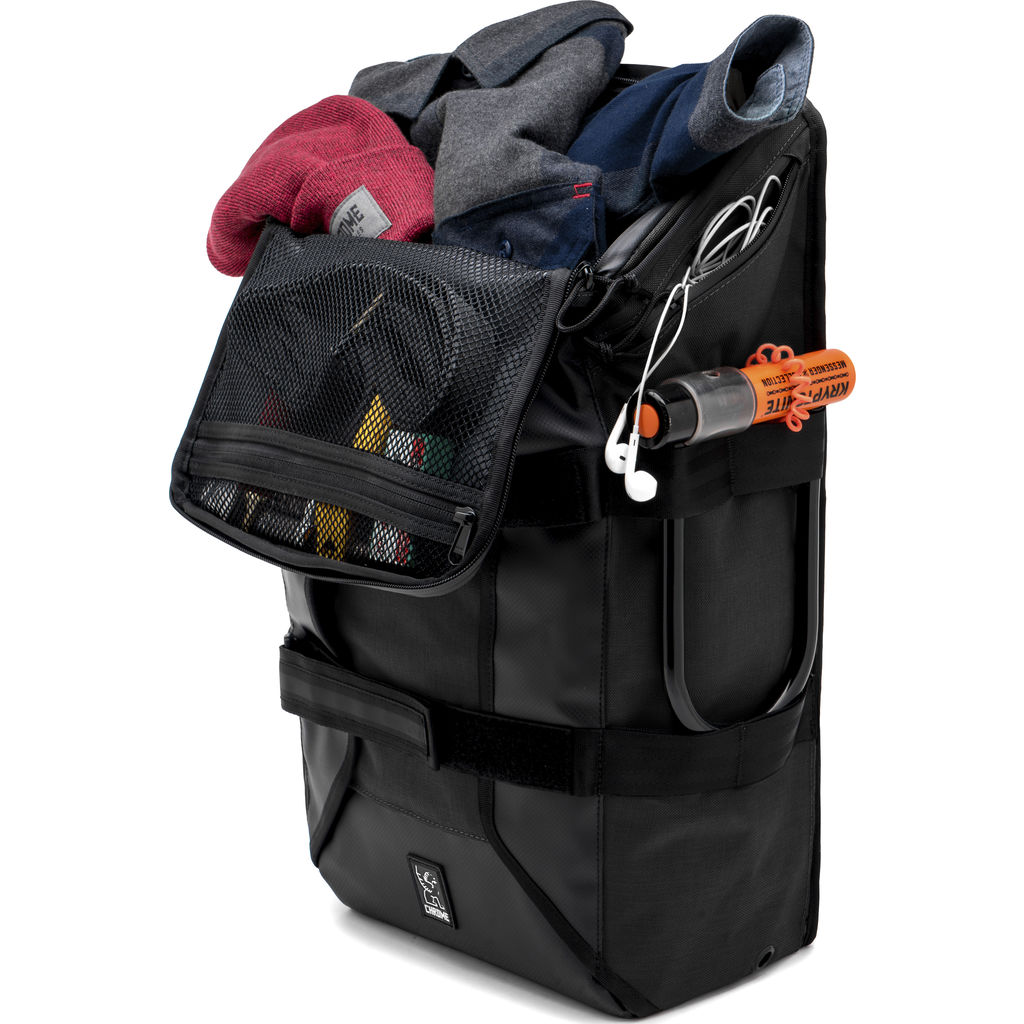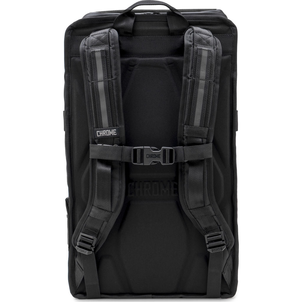 The Chrome all Black Brigade backpack is an all-season bike commuter pack. The Brigade has waterproof zippers, interior and exterior pockets, helmet and shoe carrying options. This bag is perfect for any commute.