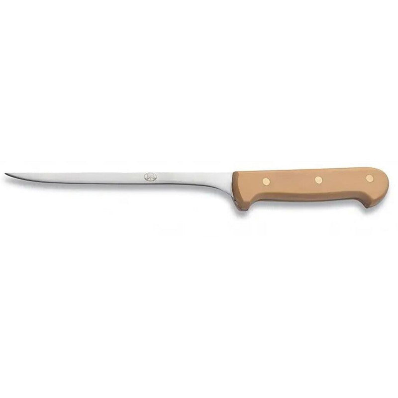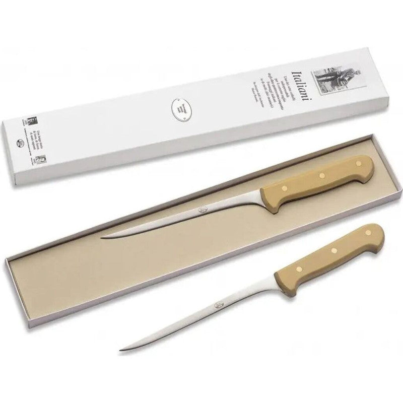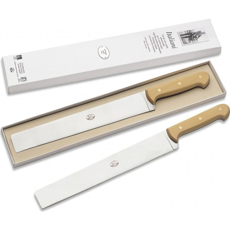 The Hard Cheese Knife by Berti has a broad blade strong enough to carry the necessary force to cut through wheels of hard cheeses, and the Soft Cheese Knife cuts cleanly through soft cheeses without sticking or causing chipping or cracking. Berti knives are handmade in Italy by skilled artisans with the technique used since 1895. The knives are forged out of stainless steel and are made with the highest craftsmanship. Berti artisans create knives with the integrity and authenticity that cannot result from mass production. The same craftsman that begins a knife takes it all the way through to the completion.