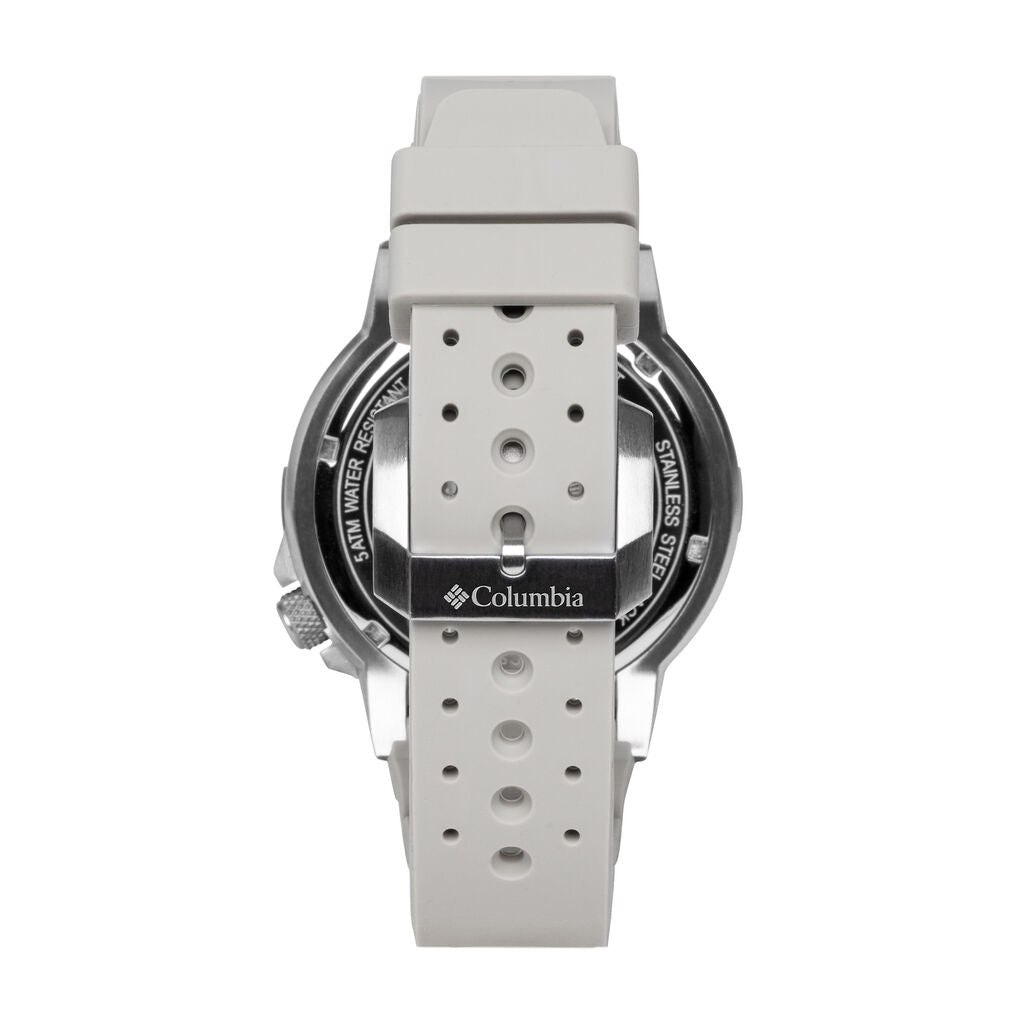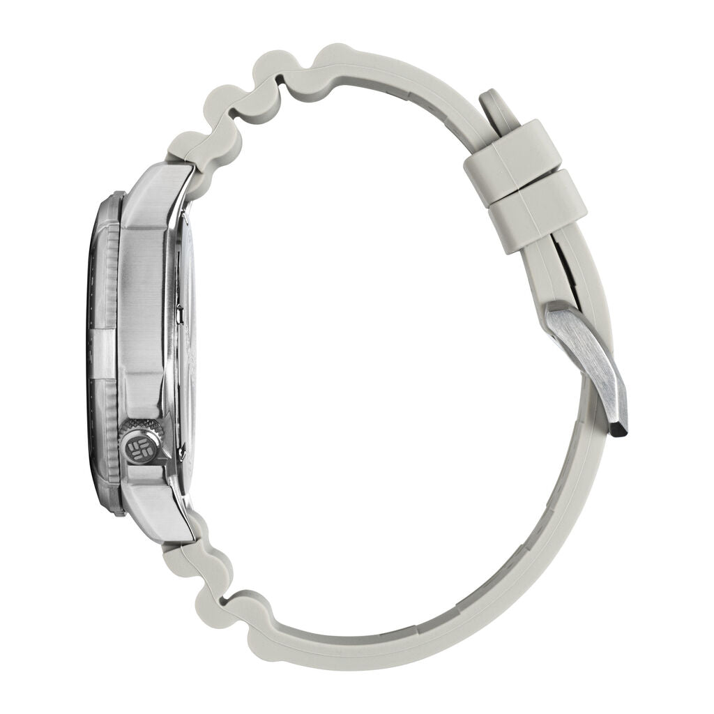 The case’s diameter measures at 42mm and it is made of stainless steel, in order to increase the longevity of the watch. The bezel also features raised numeral markings that feature as additional time-keeping aid. The bezel is finished using a brushed technique, which provides a contrast between the matte finish on the rest of the bezel. It also features a knurled crown that is situated at the 4 o’clock marks. Knurled crowns are also used on the widely respected Seiko SKX divers.