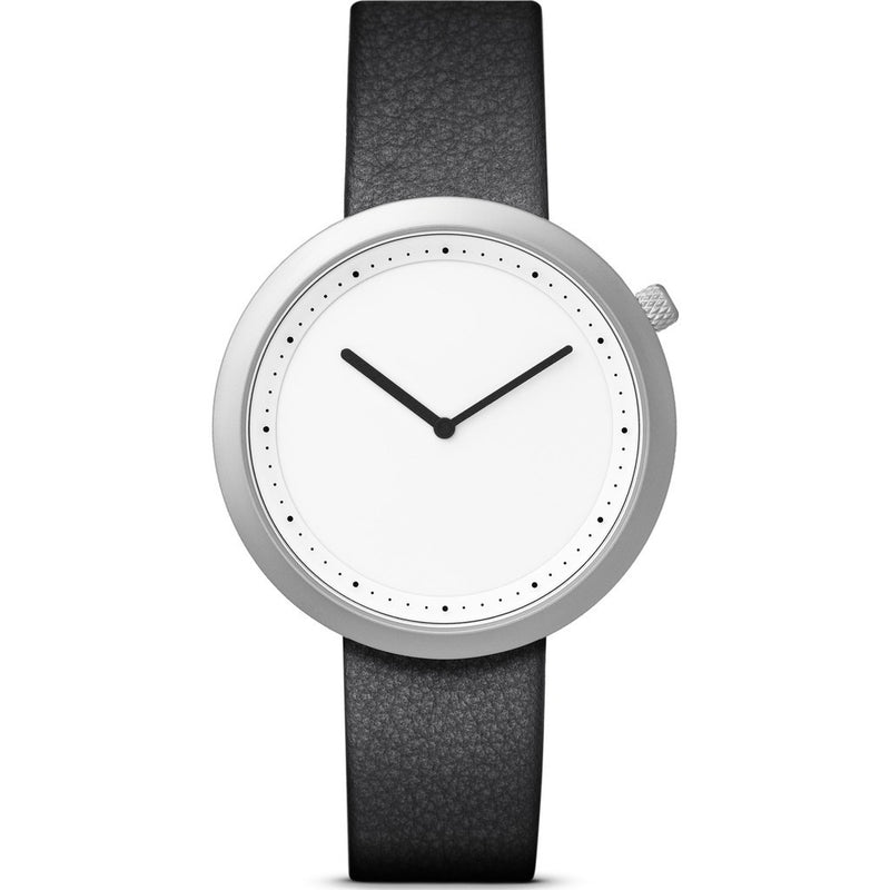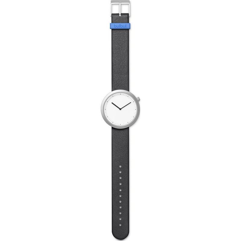 The simple and elegant Bulbul Facette 05 men's watch features sapphire crystal glass, Swiss made 14K-gold plated movement, ten years of battery life, and a 316L stainless steel casing. This danish design is iconic and subtle in its circular design and is accompanied by a fine black Italian leather strap. The Facette 05 maintains Bulbul's high-level of precision engineering.