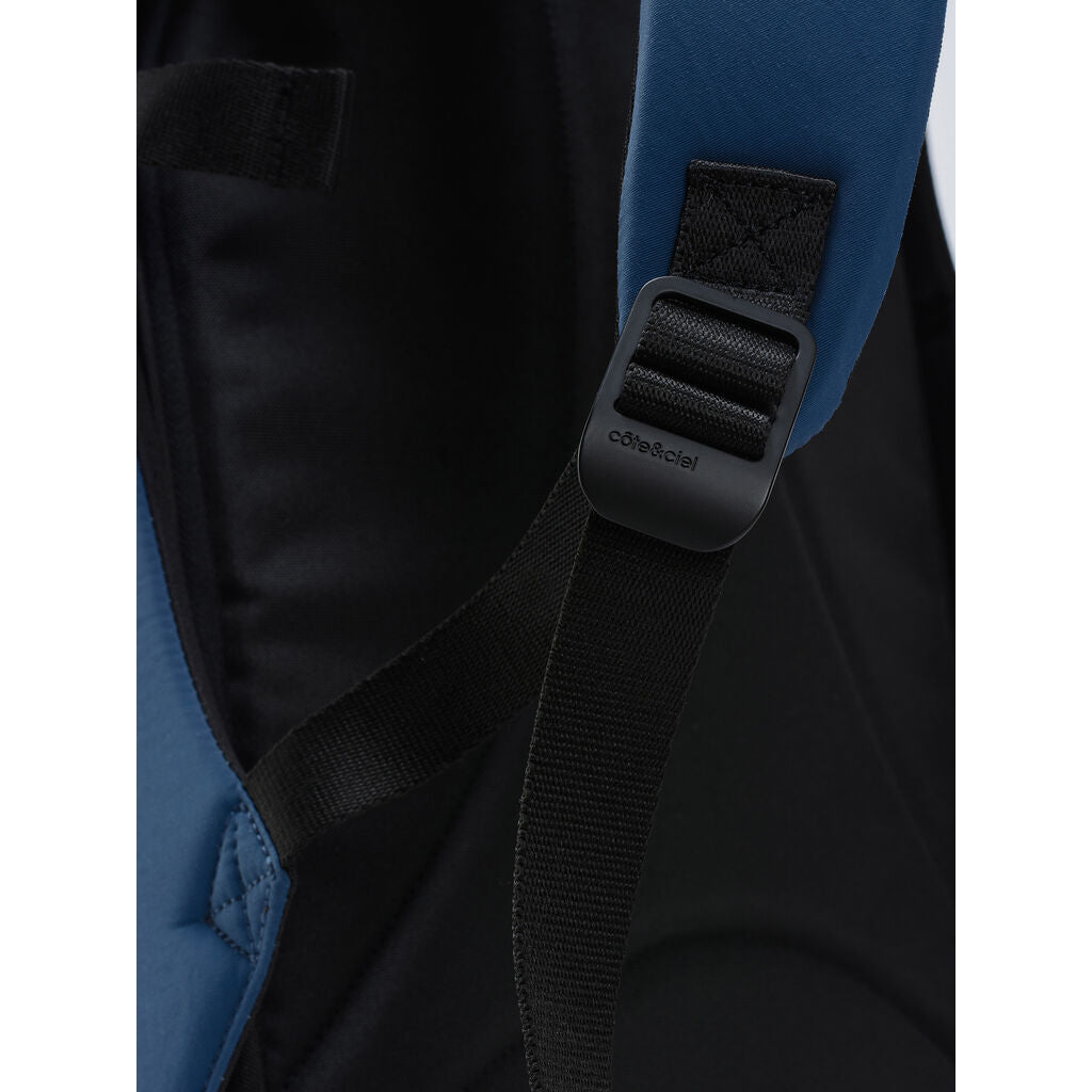 The iconic form of the ISAR creates an architectural silhouette. This asymmetrical backpack features two main compartments, the front section expands according to your carrying needs. This version of the ISAR features removable colourful accessories and a vertical pocket housing a rain cover. In the rear compartment, a padded pocket provides safe storage for laptops of up to 13”.