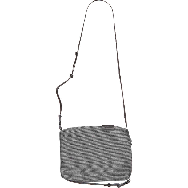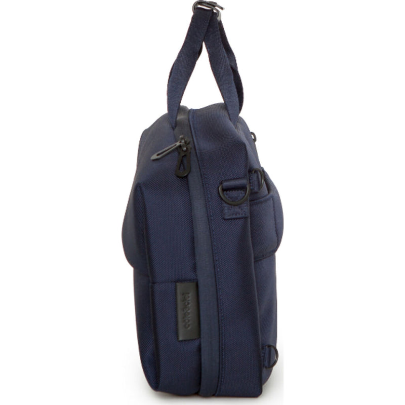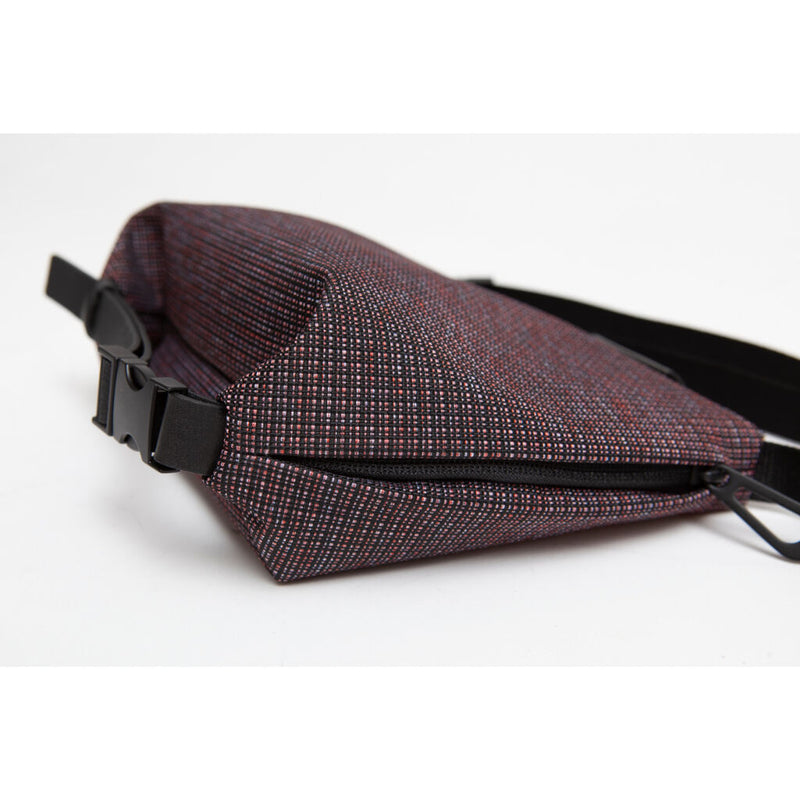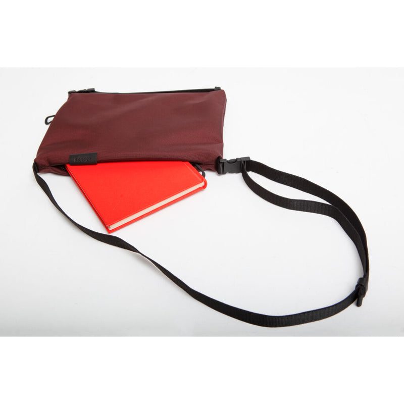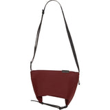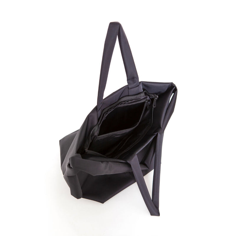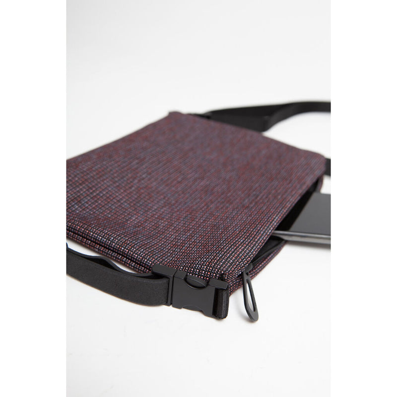 A clever buckle enables you to wear the Inn horizontally or vertically; with two separate zipped compartments, alternately accessible from the top side in either format. When the straps are tightened the bag becomes a volume, adjusting to your carrying needs. Smooth cotton and polyester blend, this fabric has a surface sheen, with a slightly metallic quality. Beautifully-colored, this material has an architectural aesthetic.