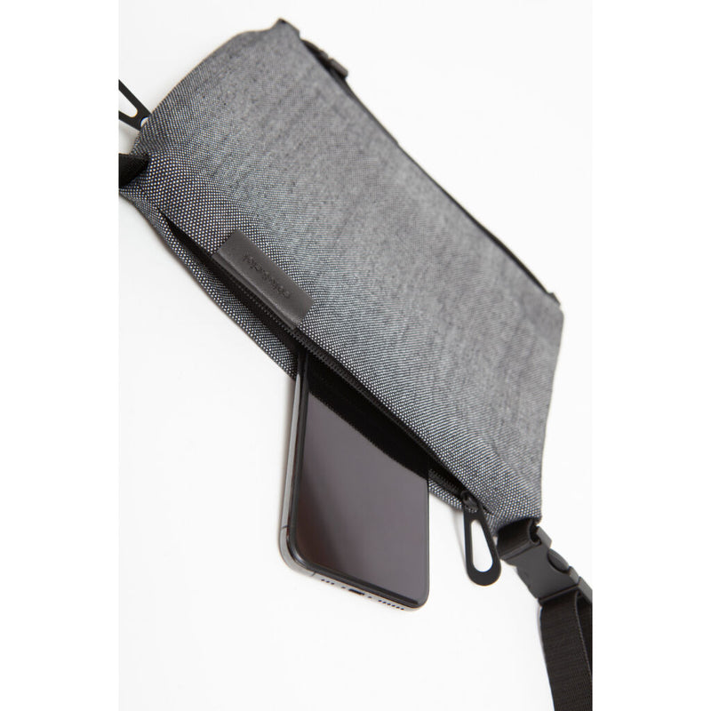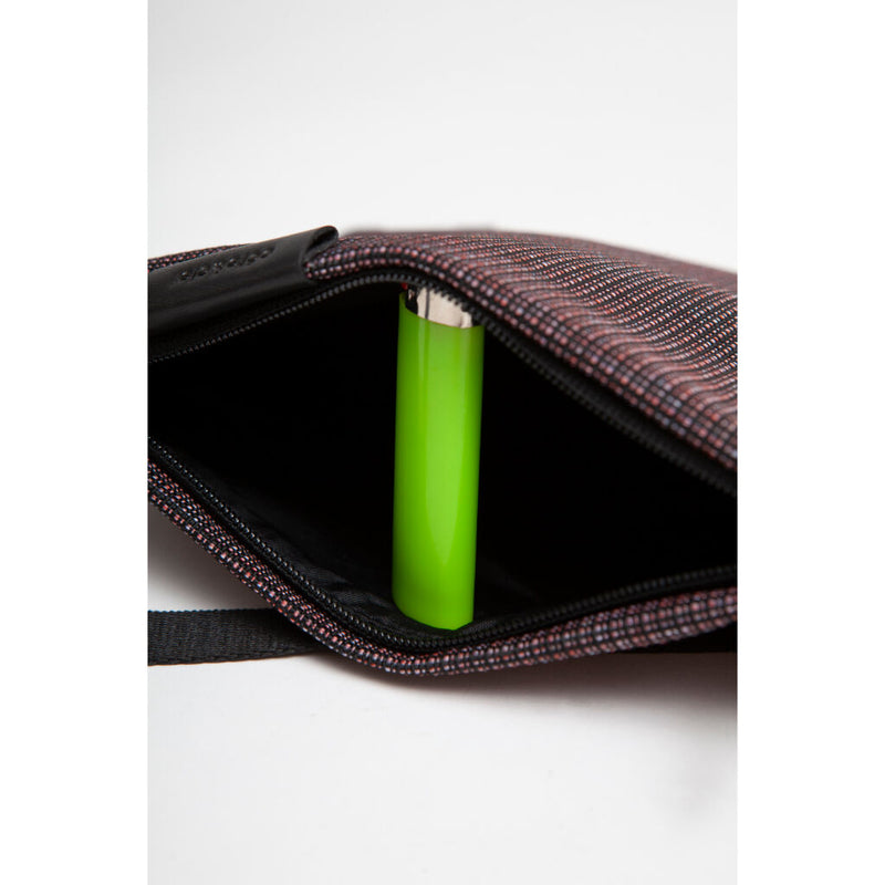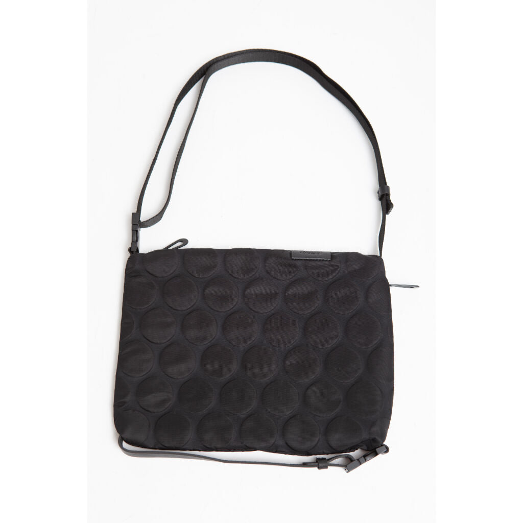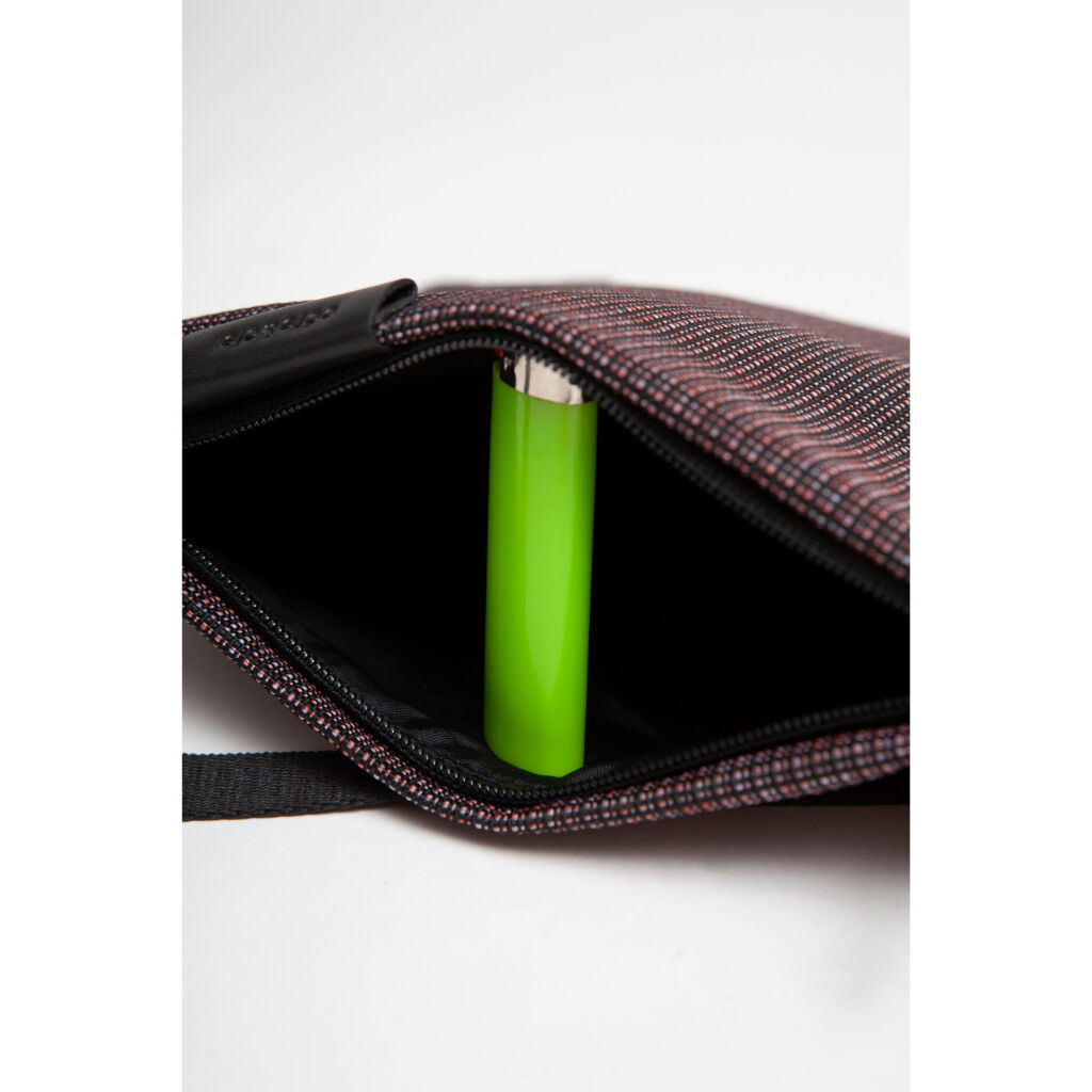 A clever buckle enables you to wear the Inn horizontally or vertically; with two separate zipped compartments, alternately accessible from the top side in either format. When the straps are tightened the bag becomes a volume, adjusting to your carrying needs. Smooth cotton and polyester blend, this fabric has a surface sheen, with a slightly metallic quality. Beautifully-colored, this material has an architectural aesthetic.