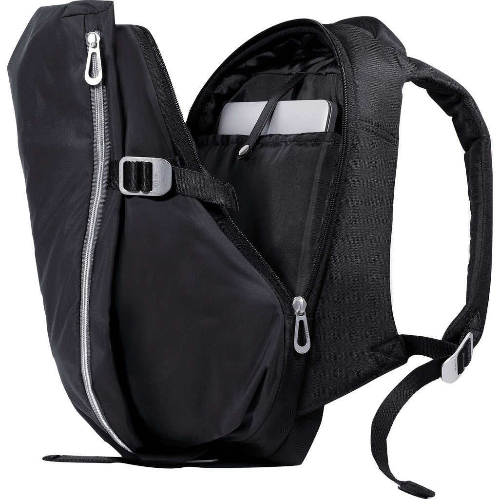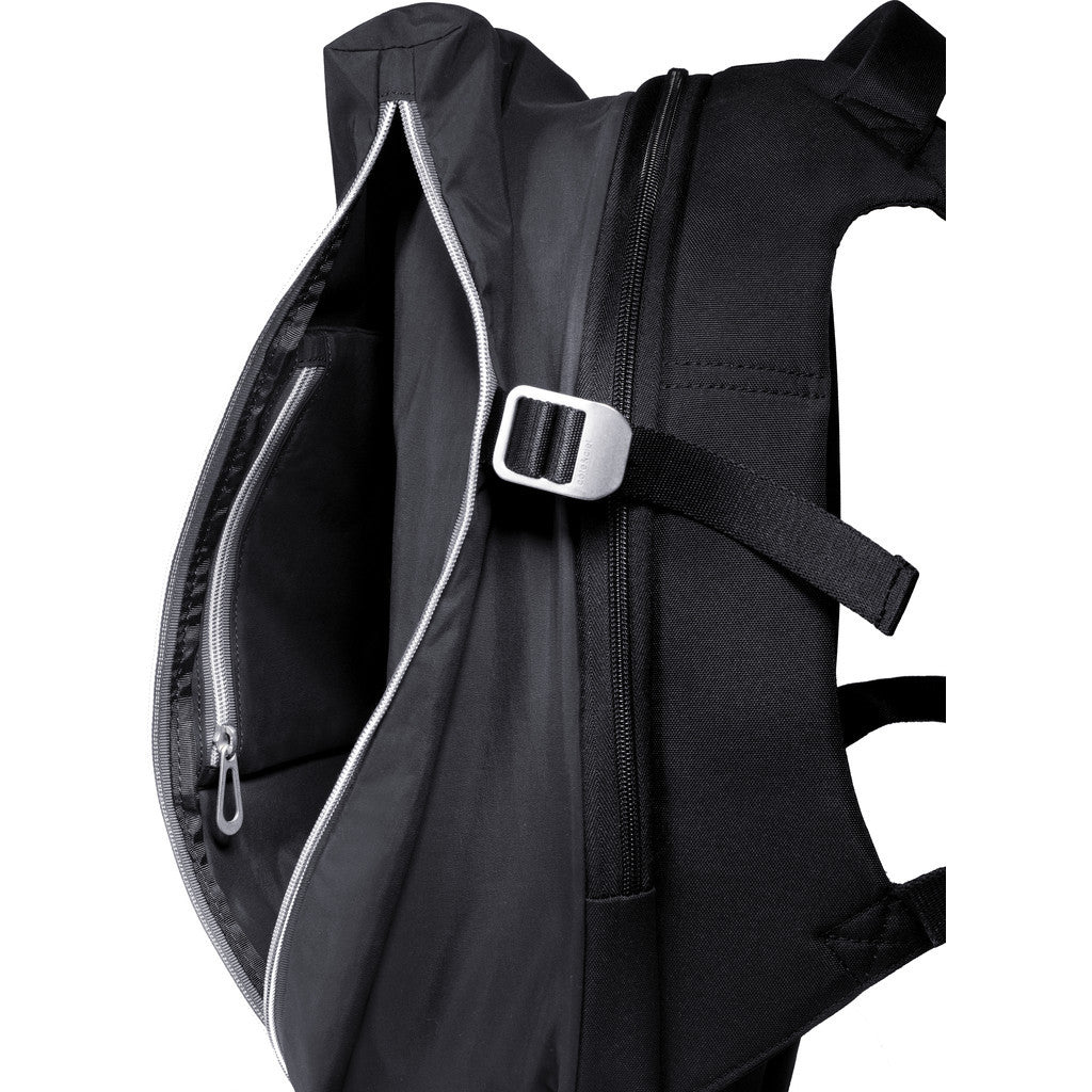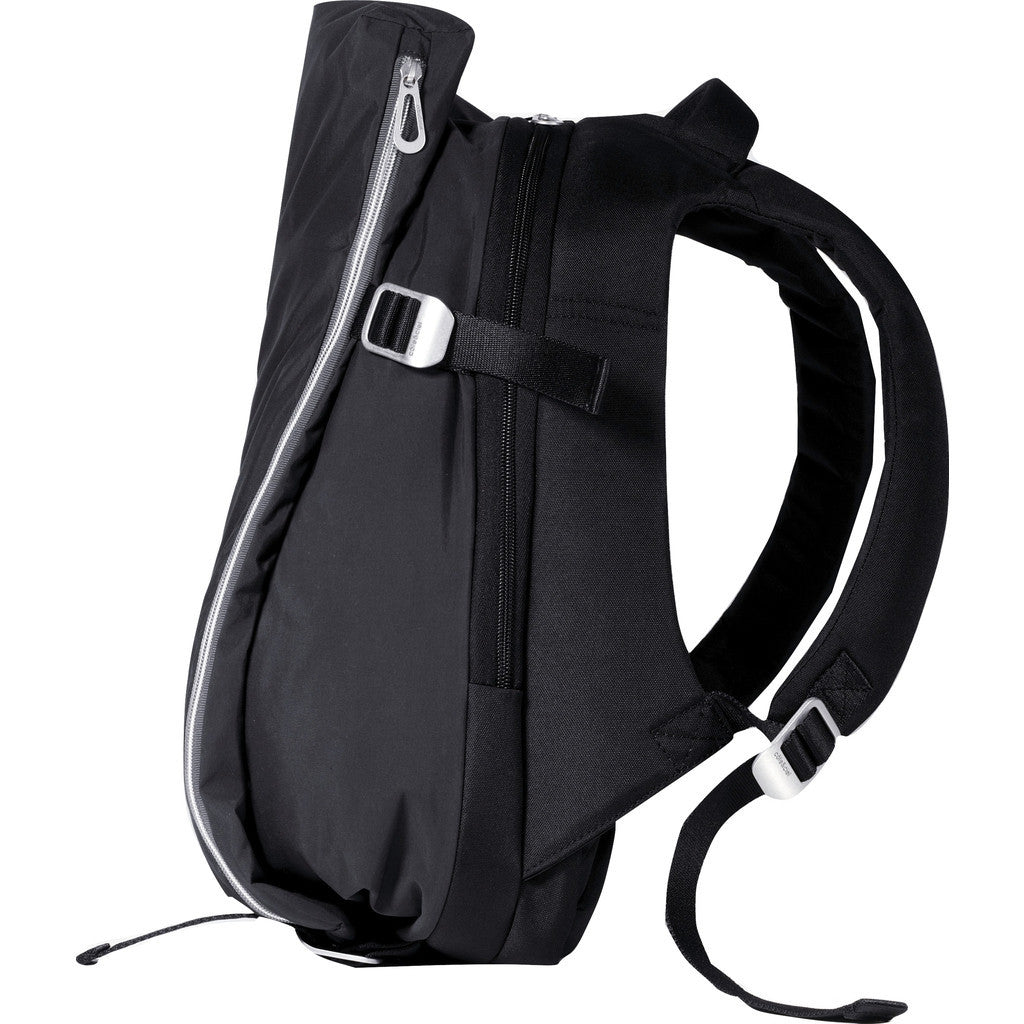 The Cote et Ciel Isar Rucksack in Jet Black embodies their iconic style with flowing lines and unassuming functionality. Seemingly more of a sculpture than a backpack, the unusual shape is an exercise in ostentatious forward thinking and progressive design. The Small Isar Backpack is for those daily commuters looking for functionality while making a fashion forward statement. The nylon exterior features a front compartment with a pocket for valuables and compression straps to organize your belongings. The separate back compartment of the backpack has a padded laptop pocket that protects your devices up to 13", with mesh pockets that have space for your daily carry.