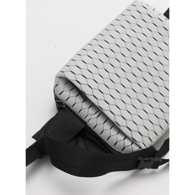Inspired by one of the many moons of Saturn, Cote & Ciel's Isarau Mimas Sling Bag in Grey is vibrant with beautiful futuristic space aesthetic. Just like the surface of the moon, reflective grey elements return light. This messenger bag is versatile enough to express your style with multiple ways to be worn. Inspired by traditional Japanese armour for practical living in the city. Constructed with lightweight, sporty fabric and a bold white-on-grey geometric sandwich mesh to the rear. Features two main compartments and padded device pocket internally and concealed pocket to the rear. Secured with zips, buckles, and metal trims for a worry-free traveling.