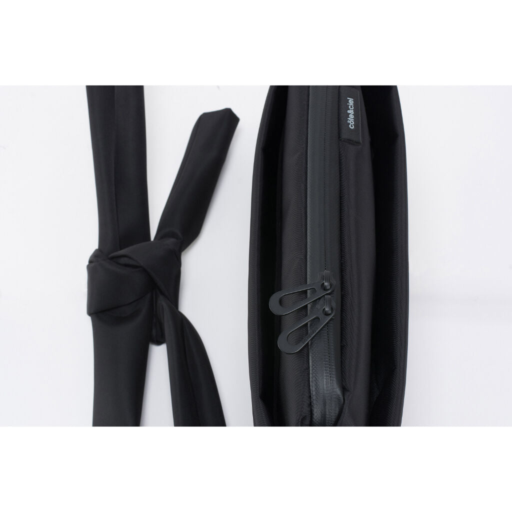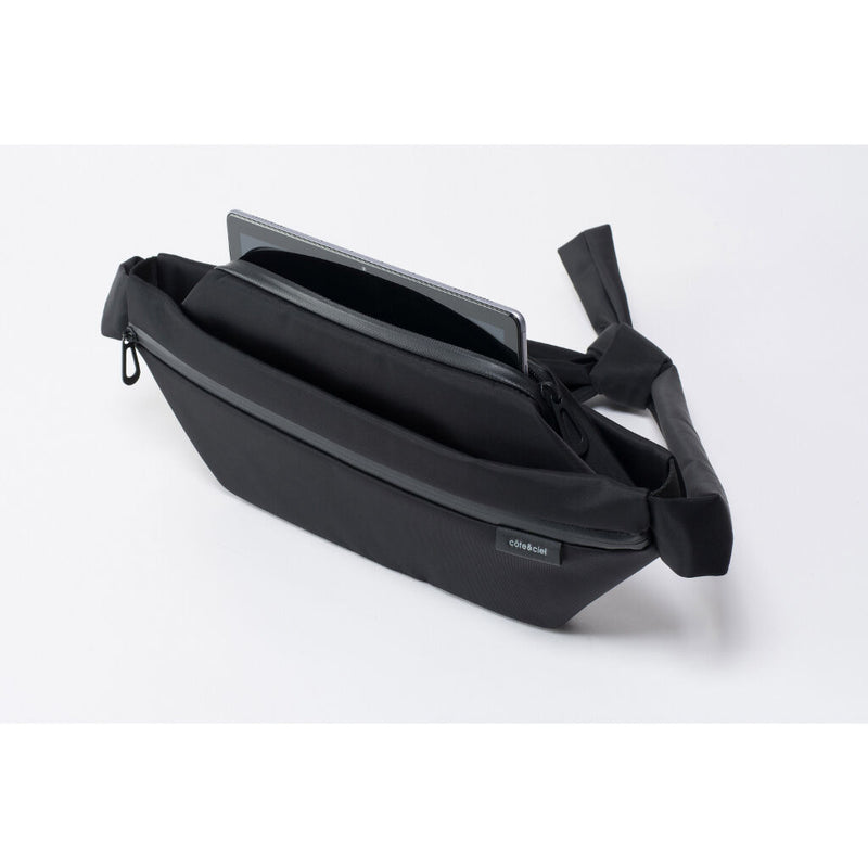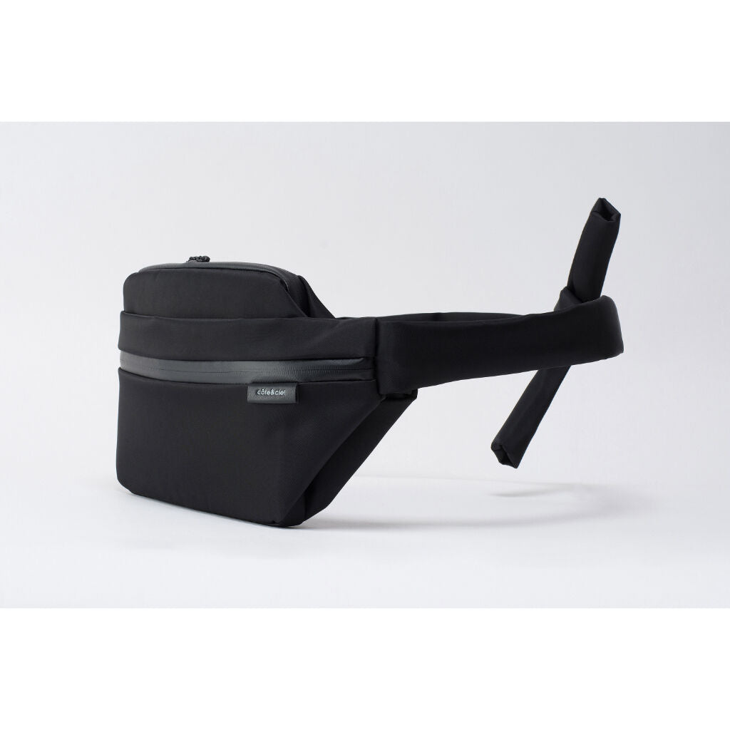 A versatile and practical sling bag inspired by the breastplate worn on traditional Yabusame. Ergonomically sophisticated, a 2-way design that can be worn both as a body and as a waist back. Front space with side adjuster belts The capacity can be adjusted. The tablet space is highly cushioned and has a secure design with a magnet belt for fixing. A fastener-type pocket is provided on the back to store passports, etc., safely. The