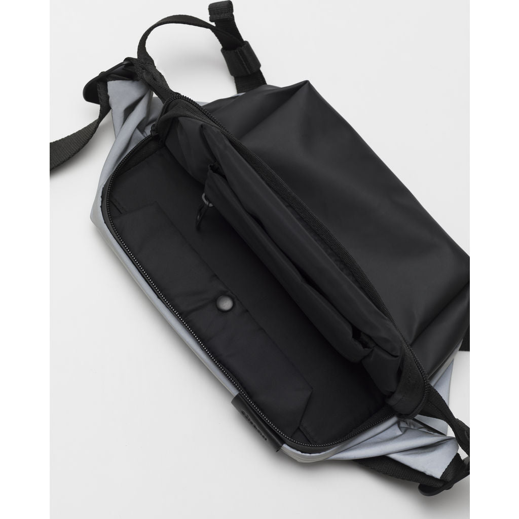 Inspired by one of the many moons of Saturn, Cote & Ciel's Isarau Mimas Sling Bag in Grey is vibrant with beautiful futuristic space aesthetic. Just like the surface of the full moon, highly reflective grey elements return light. This messenger bag is versatile enough to express your style with multiple ways to be worn. Inspired by traditional Japanese armour for practical living in the city. Constructed with lightweight, sporty fabric and a bold white-on-grey geometric sandwich mesh to the rear. Features two main compartments and padded device pocket internally and concealed pocket to the rear. Secured with zips, buckles, and metal trims for a worry-free traveling.