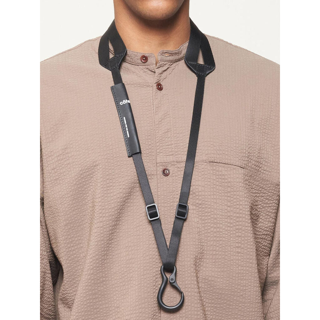 Introducing the Cote & Ciel Lanyard Keychain in sleek Black—a functional accessory designed to keep your essential possessions securely within reach. This versatile lanyard features two fixed adjustment points, a reinforced nape area, and a matte black zinc alloy carabiner. It's a stylish and reliable solution for keeping your keys, ID, or other small essentials close to you. With dimensions of 0.6 cm in depth, 5.2 cm in height, and a generous 77.5 cm in width, and a weight of 0.08 kg, it's designed for both comfort and convenience in everyday use. Elevate your daily essentials and stay organized with the Cote & Ciel Lanyard Keychain in Black.
