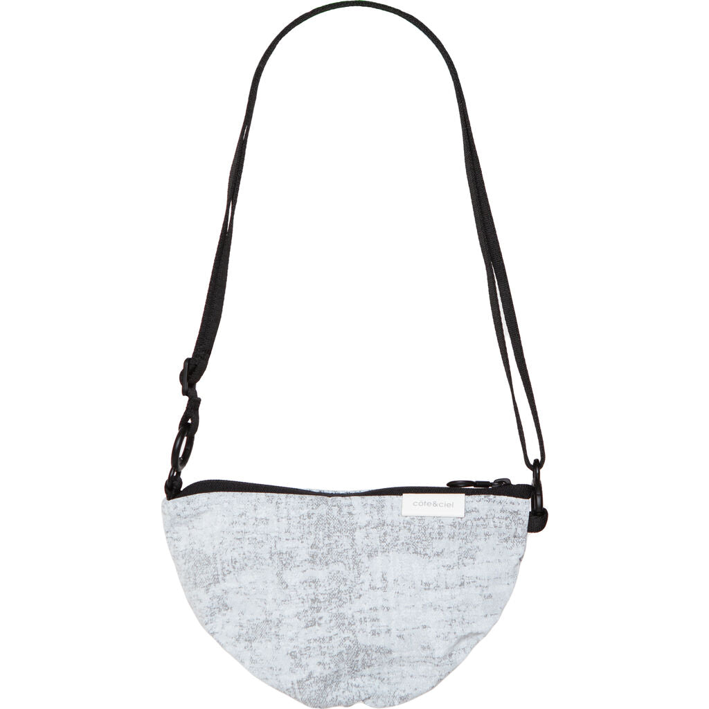 Made from light grey Nylon fabric with a tactile, papery feel and creased appearance, this 'wearable' pouch is designed to follow and interact with the form of your silhouette. A playful twist in the material at the base of the bag creates a sense of movement and produces interesting folds in the fabric. A smaller internal zippered pouch creates a central divider in the main volume, creating three separate organisational compartments.