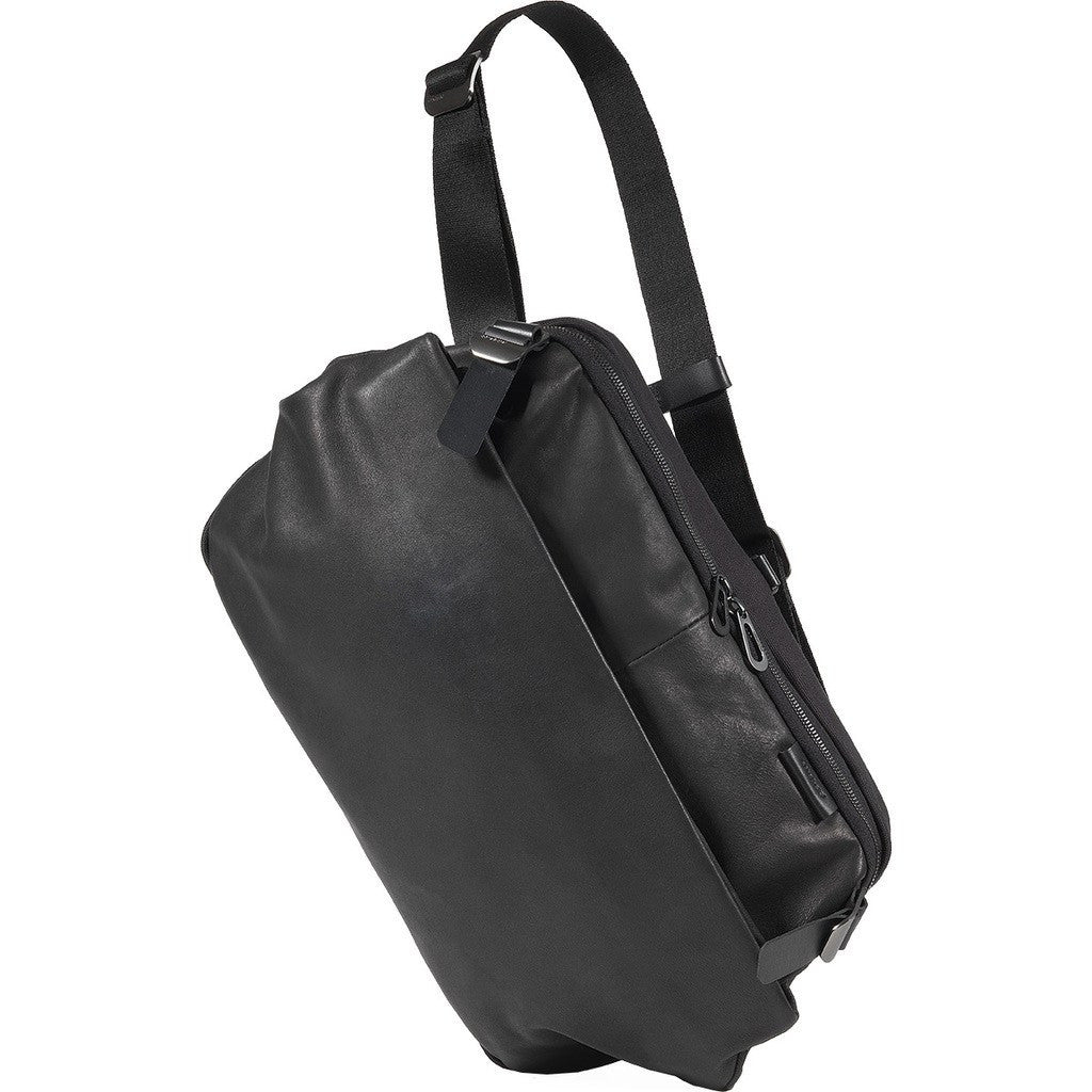 Inspired by traditional Japanese armor, the Riss is a style by Cote et Ciel. The Agate Black Riss is a flexible and versatile messenger constructed with luxurious cowhide leather. Secure this bag in place with the adjustable buckles. The Riss features a 13” internal padded computer sleeve and two pockets. The Riss can also be worn over your shoulder or across your back for ultimate comfort.