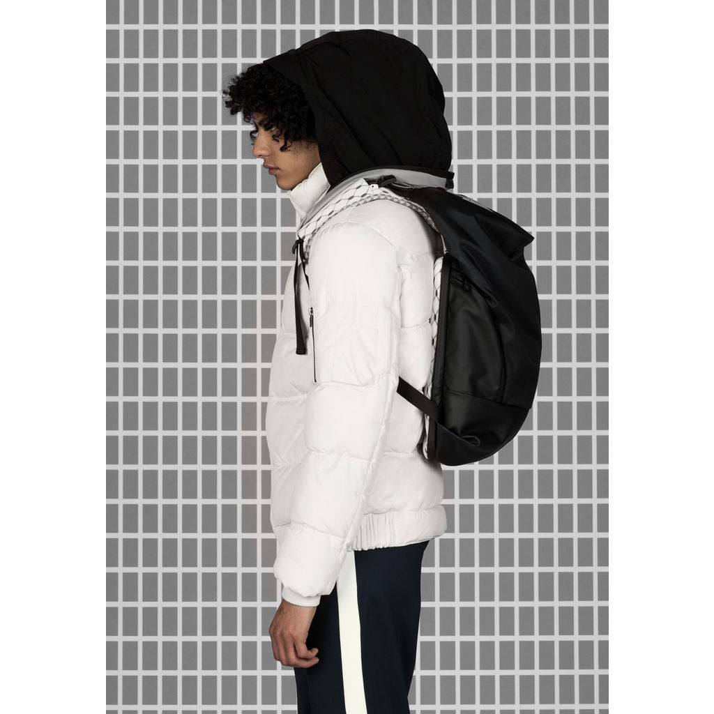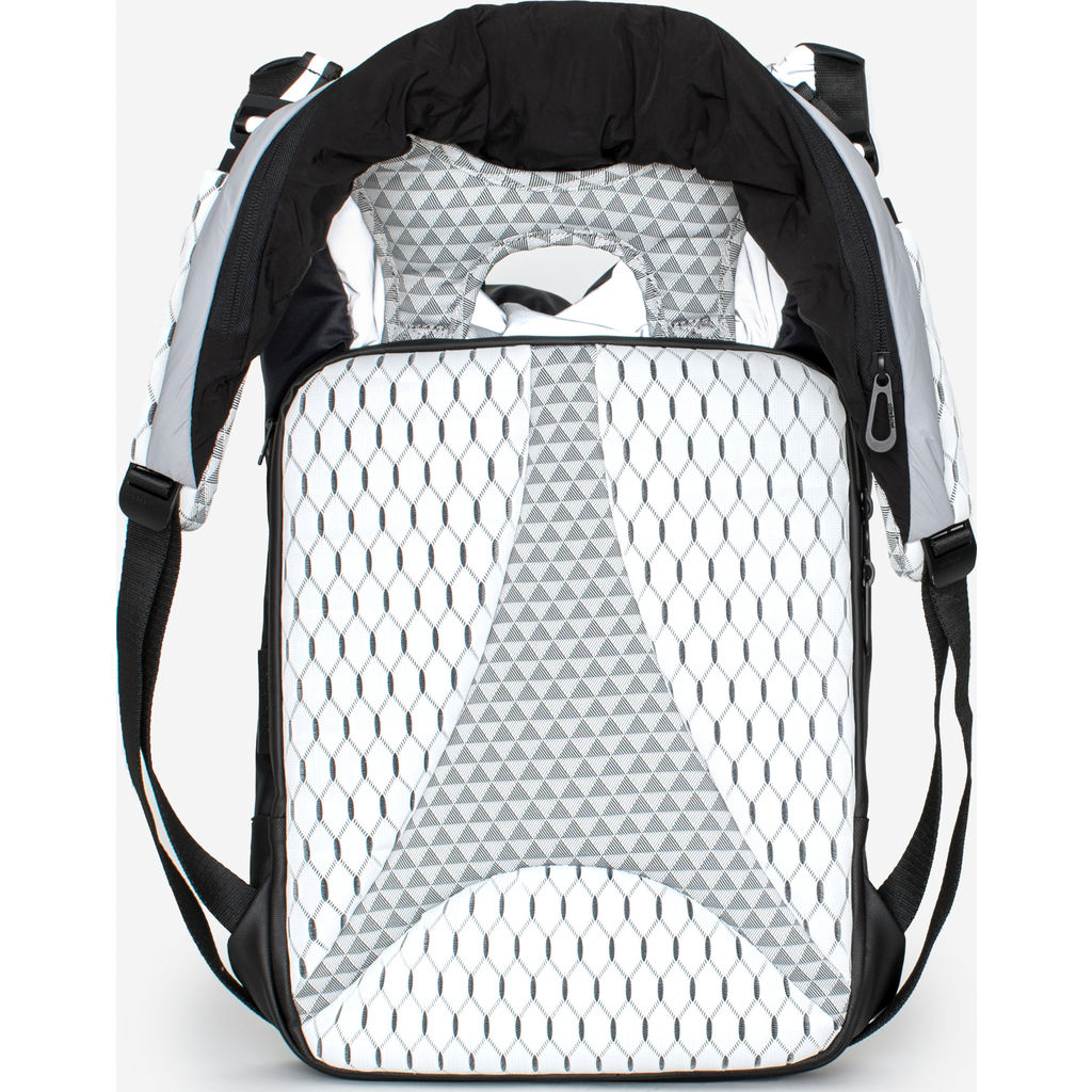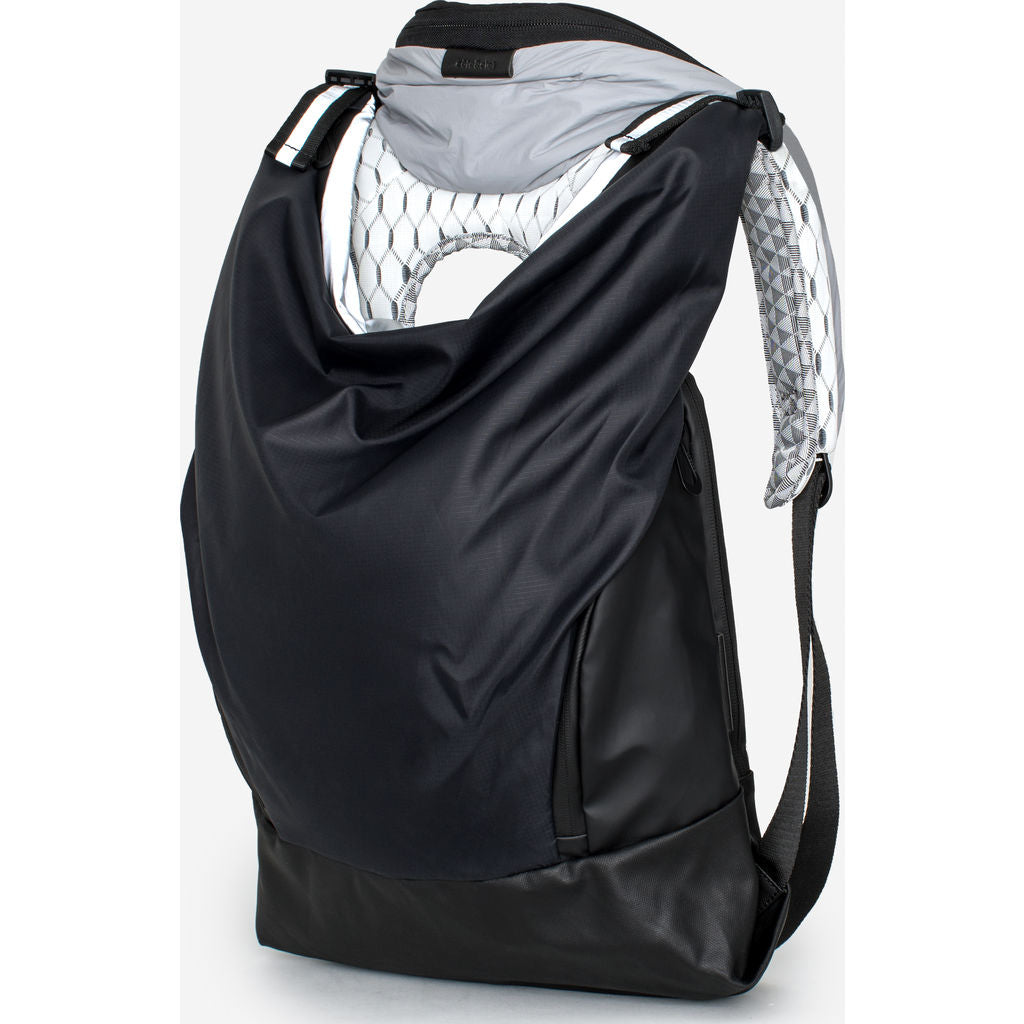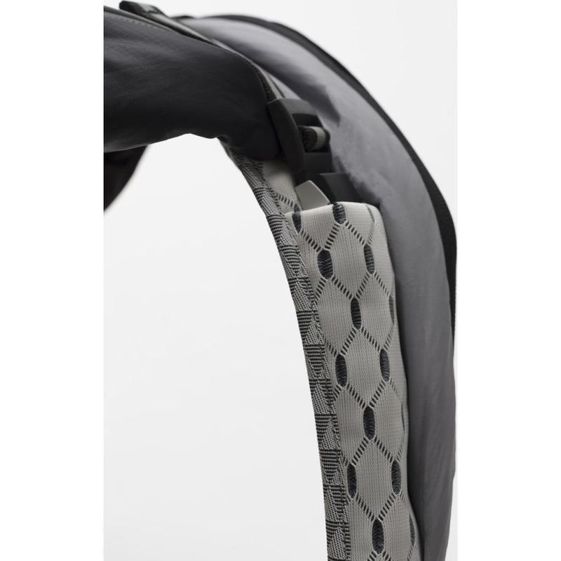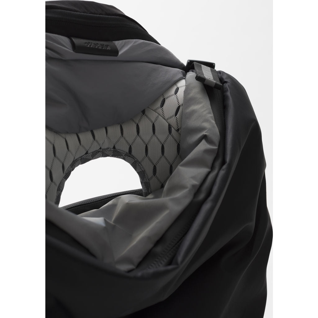 The Cote and Ciel Timsah Mimas Backpack in Grey is a compact hybrid of our iconic Nile and Tigris backpacks. Inspired by one of the many moons of Saturn, this bag comes in a beautiful reflective grey elements return light that will make you stand out from the crowd. Constructed from a lightweight, sporty black fabric, the lower front from coated canvas and side pockets from Obsidian. The back panel and straps is Cote & Ciel's combination of white-on-grey geometric sandwich mesh and woven black and white polyester forming tesselating triangles. The cocoon-like shape of the Timsah Backpack has a compartment offering safe storage for devices of up to 13”. Be comfortable while making a statement on your daily commute.