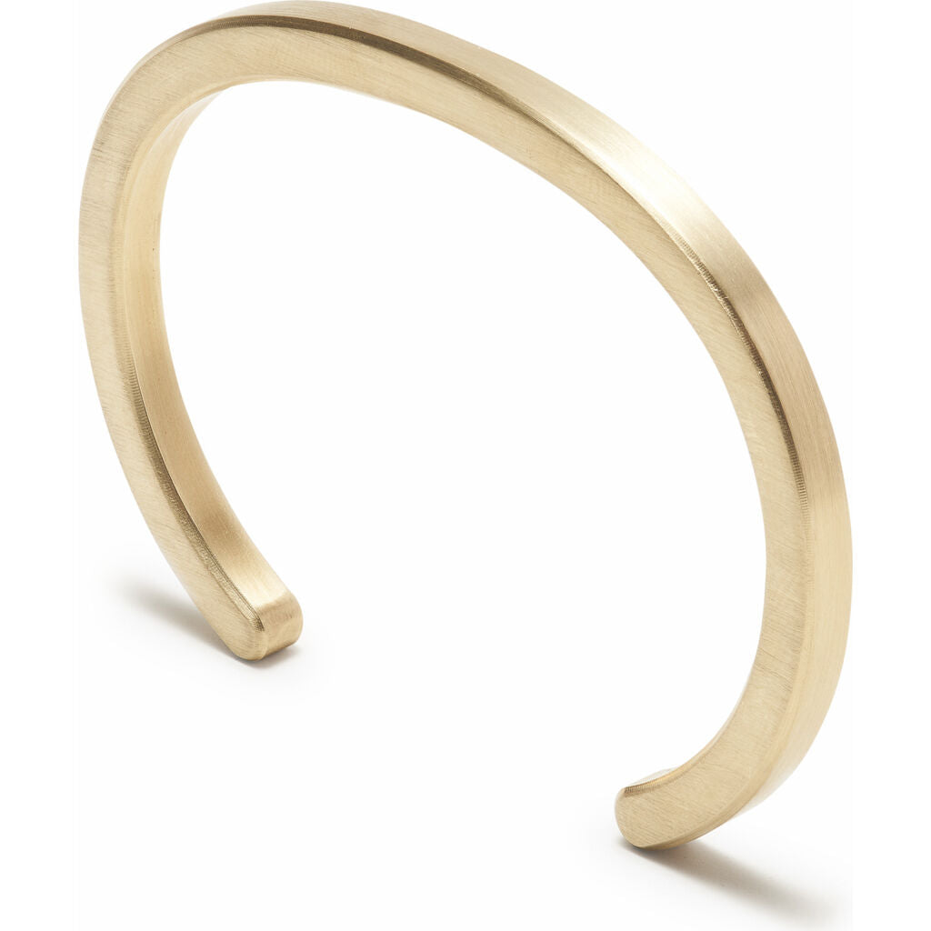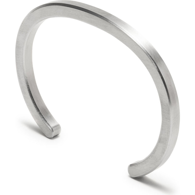 The Radial Cuff features a radial shape that closely mirrors the particular oval of a wrist for a glove-like fit, a subtly beveled edge to reflect light and create contour, precision machining for consistent sizing, five different sizes to accommodate a wide range of humans, and a slimmed down, sleek profile.