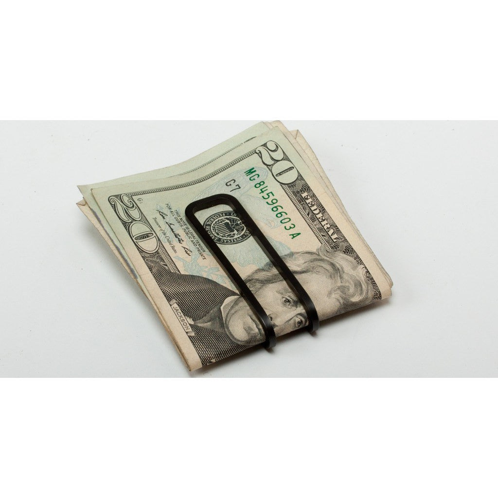 The Square Money Clip is a simplistic and functional design. Made of solid stainless steel it is extremely strong. This Carbon Black money clip maintains a slender frame.