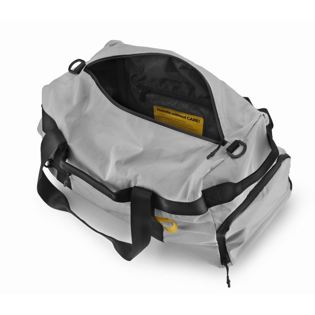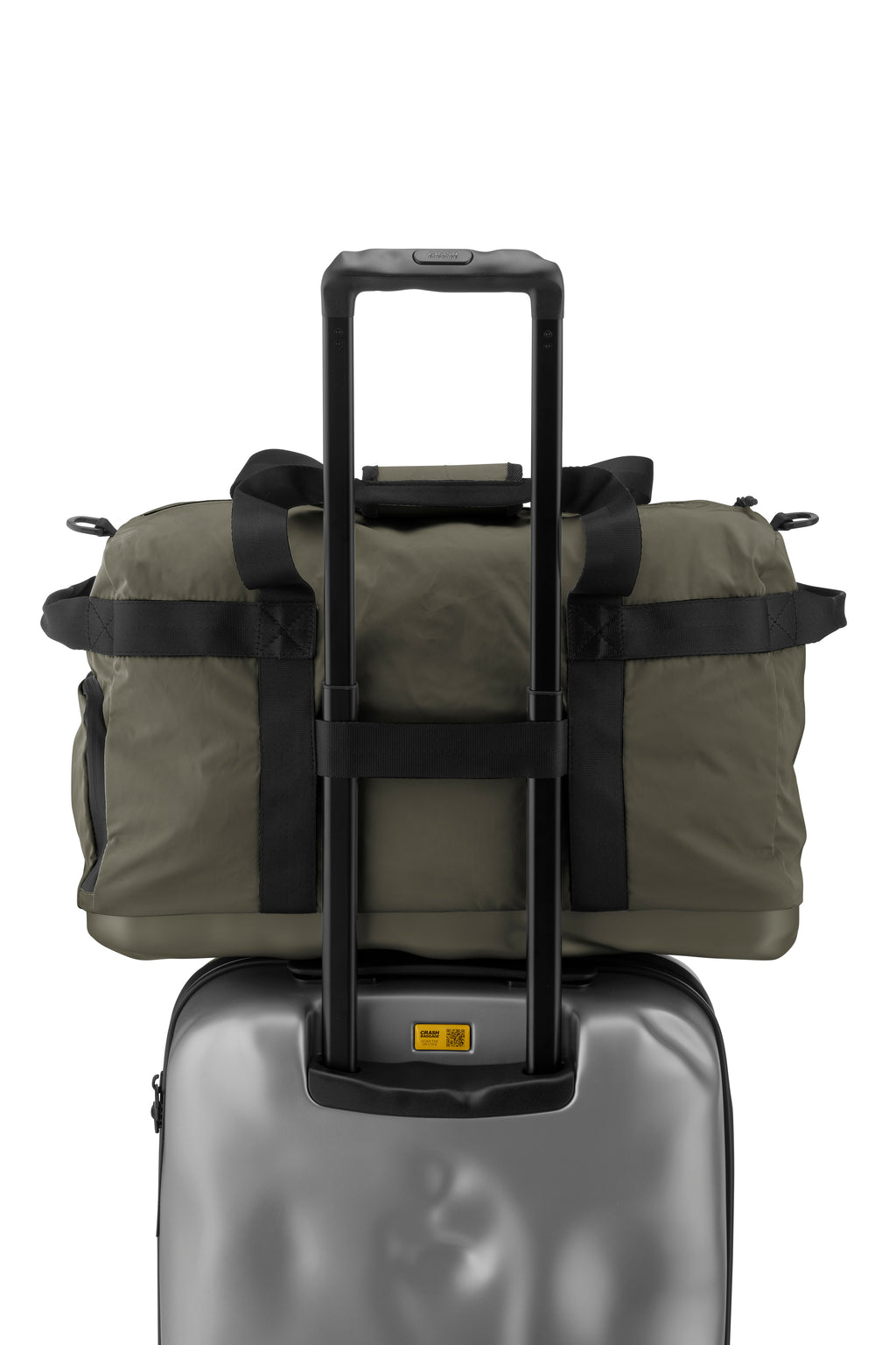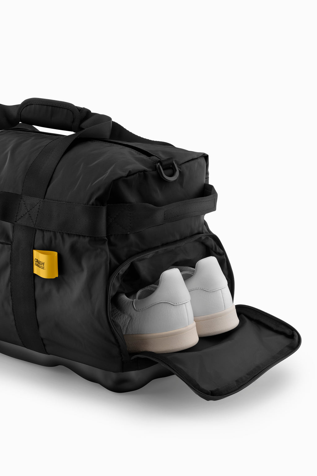 You, Spending 48 hours without cares. But even if it were just 30 minutes doing yoga, it wouldn’t make any difference. This bag is just like you. Strong and flexible. On the hard side, you won’t stop for nothing. On the soft side, you will find space for everything. The bottom of the bag is made in 100% polycarbonate and shaped in our iconic design, that makes it bear every kind of use and abuse. On the side, a separate shoes pocket, suitable for a gym session or a weekend on the beach. The soft part is made in 100% recycled waterproof polyester, and can be easily filled for a two-days trip (or a very, very busy workday). The shoulder strap and the two handle make it easy to carry, along with a special strap for an easy fastening to a trolley.