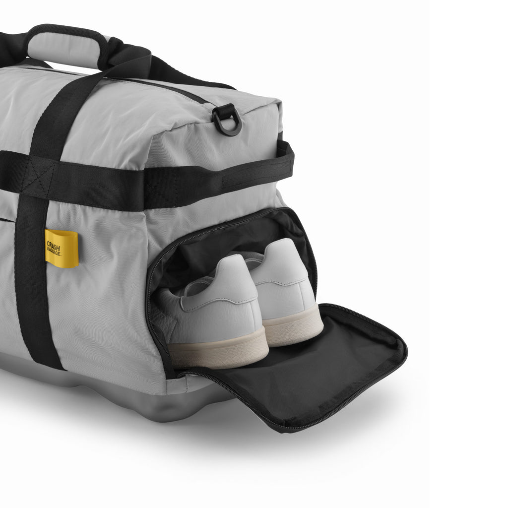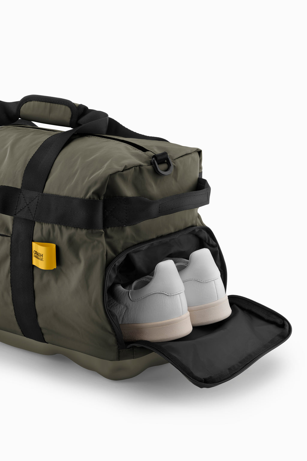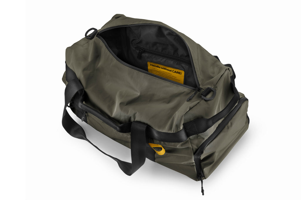 You, Spending 48 hours without cares. But even if it were just 30 minutes doing yoga, it wouldn’t make any difference. This bag is just like you. Strong and flexible. On the hard side, you won’t stop for nothing. On the soft side, you will find space for everything. The bottom of the bag is made in 100% polycarbonate and shaped in our iconic design, that makes it bear every kind of use and abuse. On the side, a separate shoes pocket, suitable for a gym session or a weekend on the beach. The soft part is made in 100% recycled waterproof polyester, and can be easily filled for a two-days trip (or a very, very busy workday). The shoulder strap and the two handle make it easy to carry, along with a special strap for an easy fastening to a trolley.