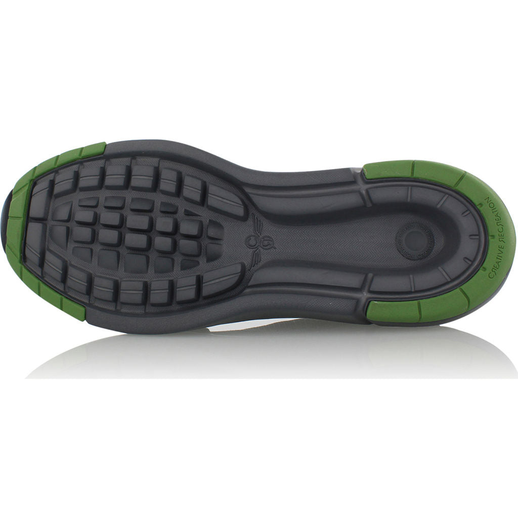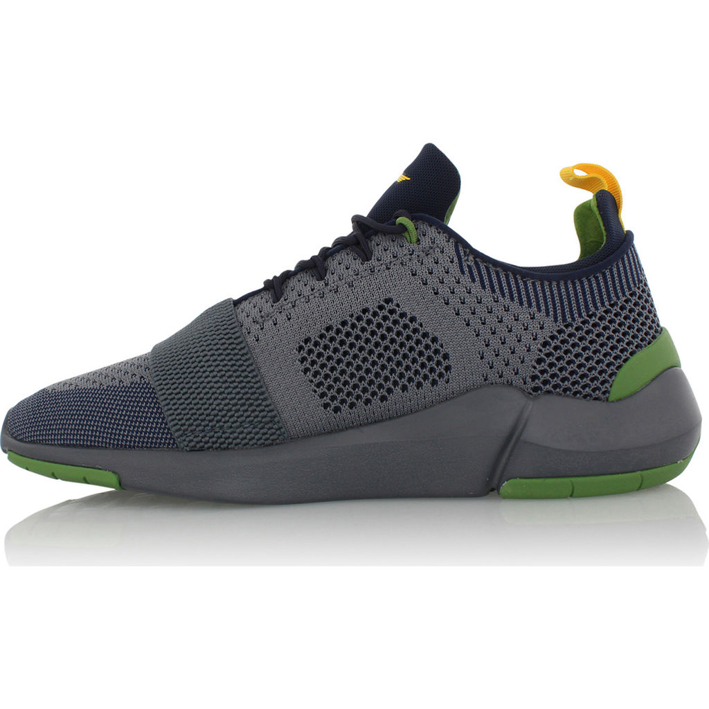 The Navy and Gray Gunmetal Ceroni Sneaker from Creative Recreation is a low-top athletic shoe that features a striking knit exterior and a neoprene bootie. Designed for a life on the move, the Ceroni is outfitted with a stretchy upper and pull-tabs to offer simplistic slip-on entry. Constructed on a light EVA outsole, an elastic strap on the front completes this sleek, ultra-athletic look.