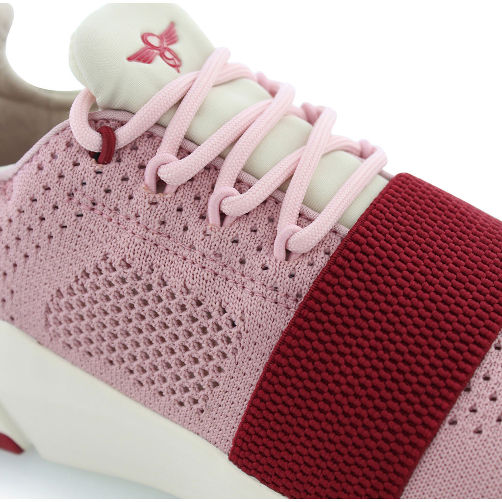 The Pink and Burgundy Ceroni Sneaker from Creative Recreation is a low-top athletic shoe that features a striking knit exterior and a neoprene bootie. Designed for a life on the move, the Ceroni is outfitted with a stretchy upper and pull-tabs to offer simplistic slip-on entry. Constructed on a light EVA outsole, an elastic strap on the front completes this sleek, ultra-athletic look.