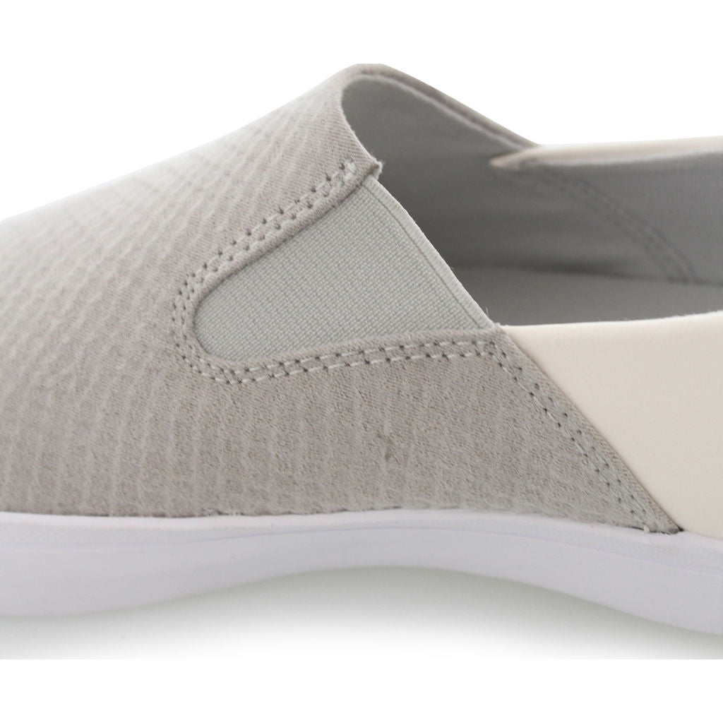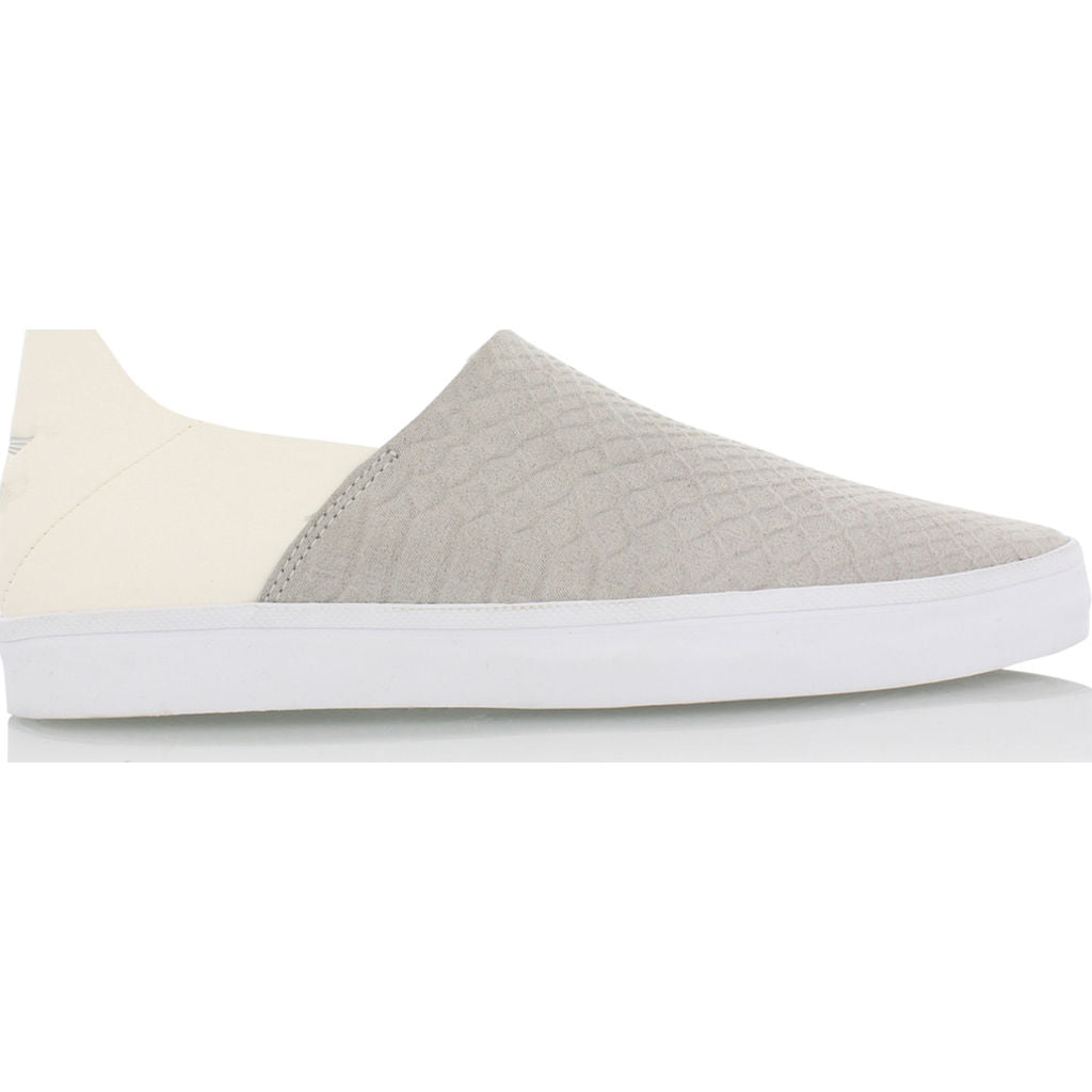 The Dano Sneaker in White and Gray from Creative Recreation is a sleek, modern slip-on shoe that boasts both comfort and versatility. The exaggerated heel paired with the oversized vamp panel creates a bold, unique look that is completed with a slim, vulcanized rubber outsole.