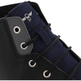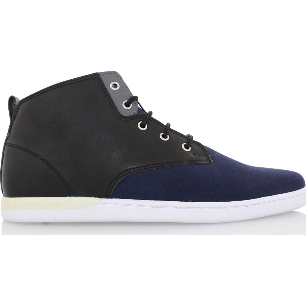 The Black and Navy Vito Sneaker from Creative Recreation is a distinguished mid-top sneaker that boasts a classic and timeless vibe. The Vito features a low-profile outsole that gives a sleek and refined look, complemented by a blucher-style toe vamp and minimal eyerow. Take the Vito shoes with you from work to dinner for a night out!