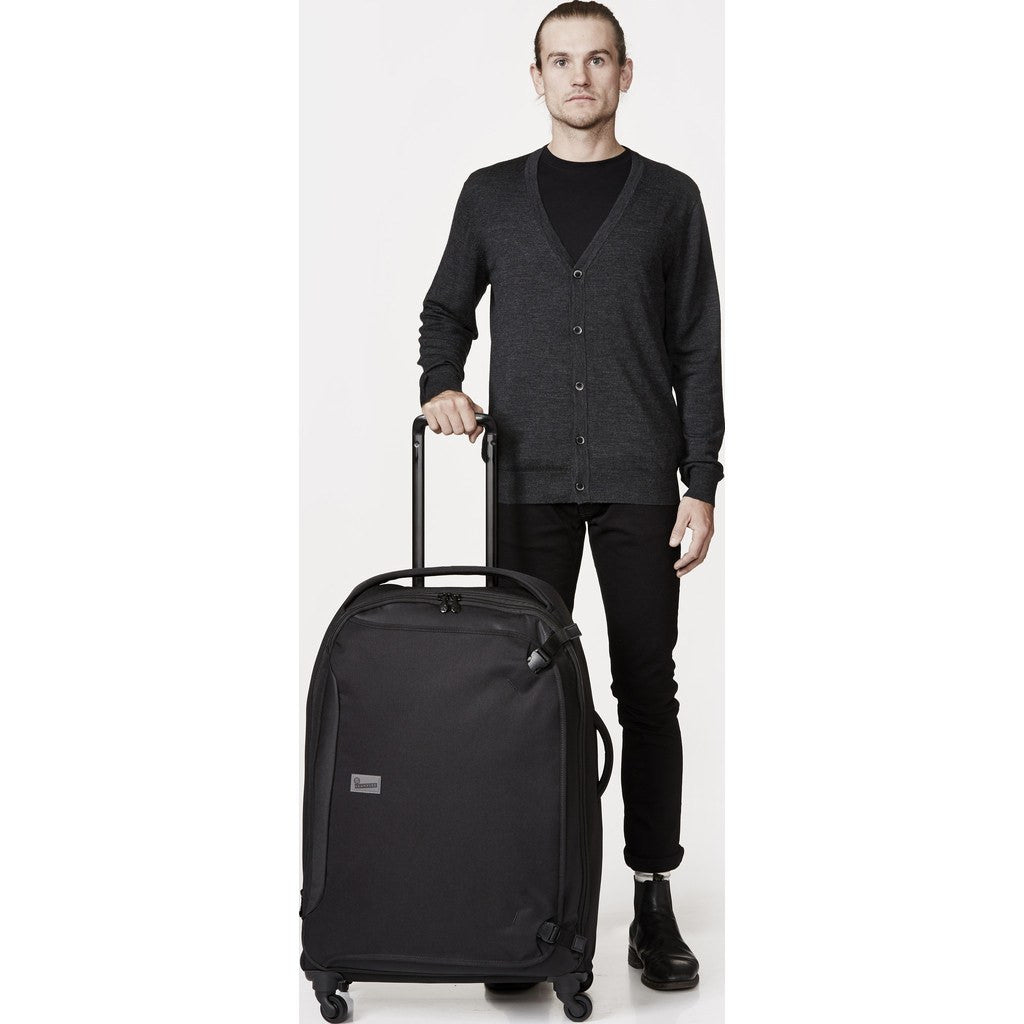 - 6 Storage zones: front zippered pocket with two-compartment organiser and key/padlock loop, lockable 85-litre main compartment, zippered mesh pocket on the reverse of the opening flap and two zippered sidewall mesh pockets