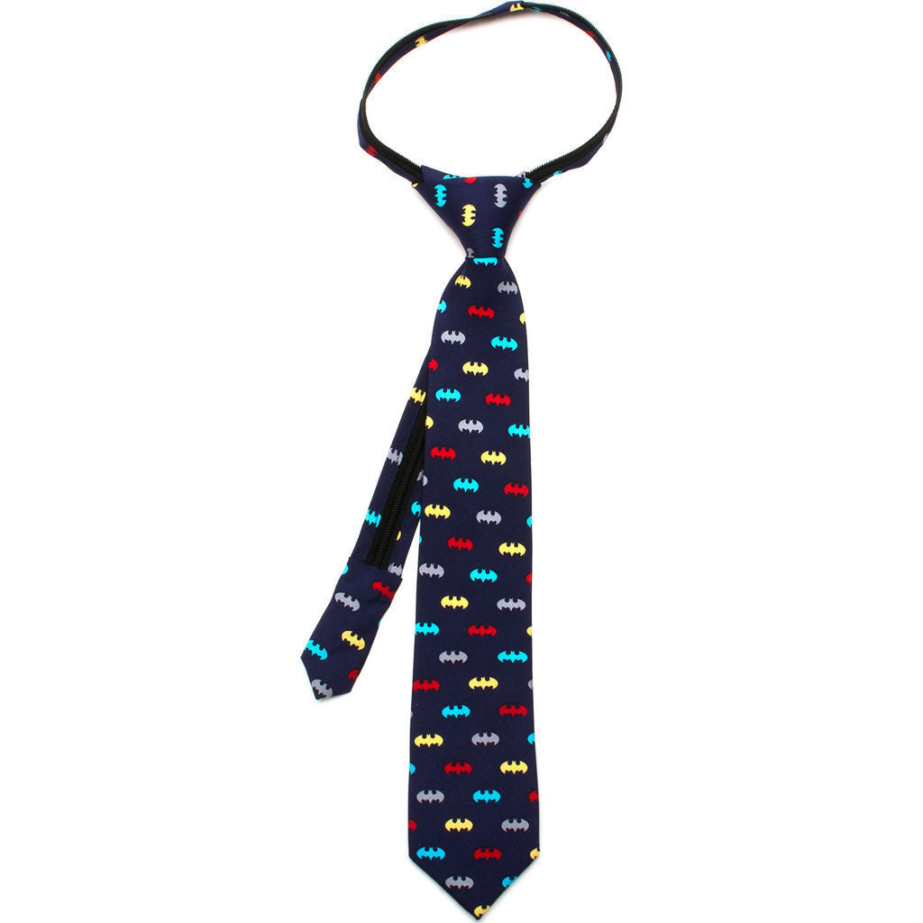Get your favorite DC Comics fan a tie he will actually want to wear with the Navy Blue Boys' Batman Zipper Tie from Cufflinks. The simplistic zipper closure ensures the little guy will never have to fuss over getting this tie on. The Cufflinks Silk Boys' Zipper Tie is best suited for children ages 3-6.