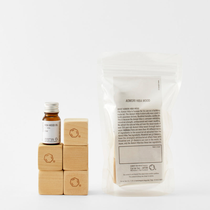 - Item Description: You can arrange the blocks all together by your desk as a fun tower or place some blocks in miscellaneous places around your desired living space. Place them in a shoe-box, a car, float them in the bath, inside your clothing drawers, etc. Includes 5 Aomori Hiba wood bocks & 1 - 12ml bottle of Aomori Hiba essential oil.