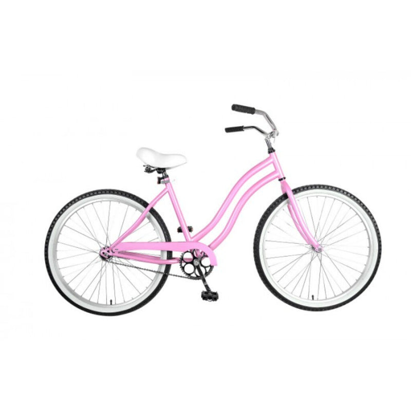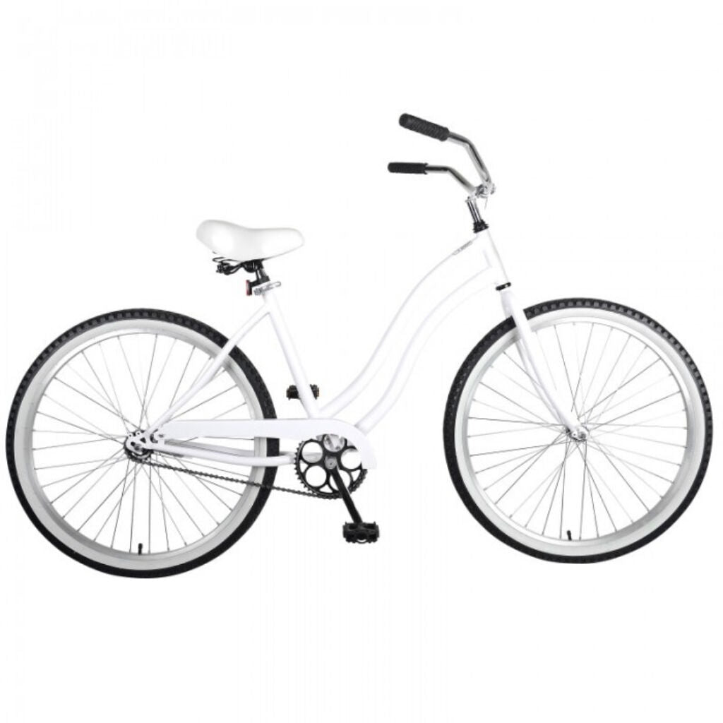 The Cycle Force 26 inch Cruiser Bike will have you rolling in style. The beach cruiser frame is combined with whitewall tires that give this bike a classic look. The simple single-speed design with coaster brake makes for less time fixing the bike and more time enjoying the ride.