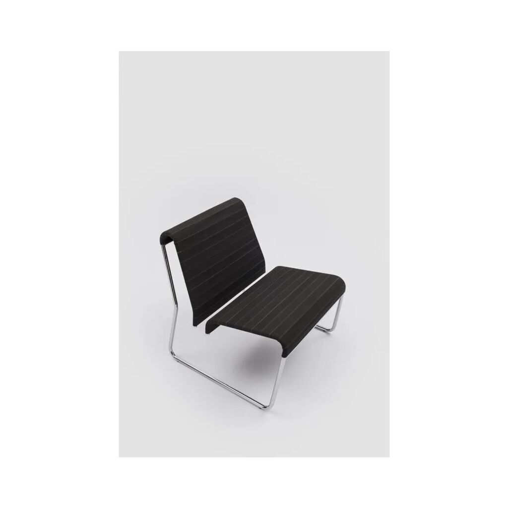 Farallon Lounge Chair is a multifunctional seat made of strips of elastic. It can be used in a variety of ways and can be easily adapted to both public and private spaces.