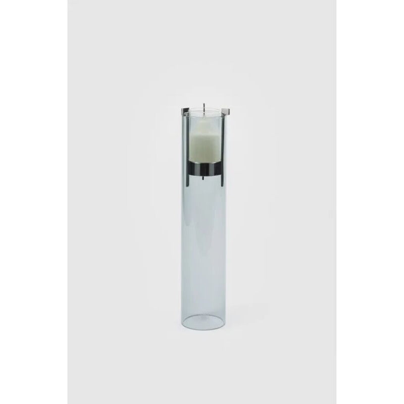 Stromboli is a candleholder that with its lightness, simplicity and intelligent design makes the most of the materials and technology used to make it. A chromed steel holder hangs inside a tall glass cylinder that protects the flame.