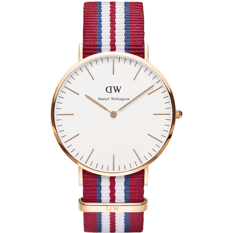 The simple sophistication of the Daniel Wellington Classic Exeter Watch is tied in perfectly with the colorfully striped wristband to create a harmoniously stylish result.
