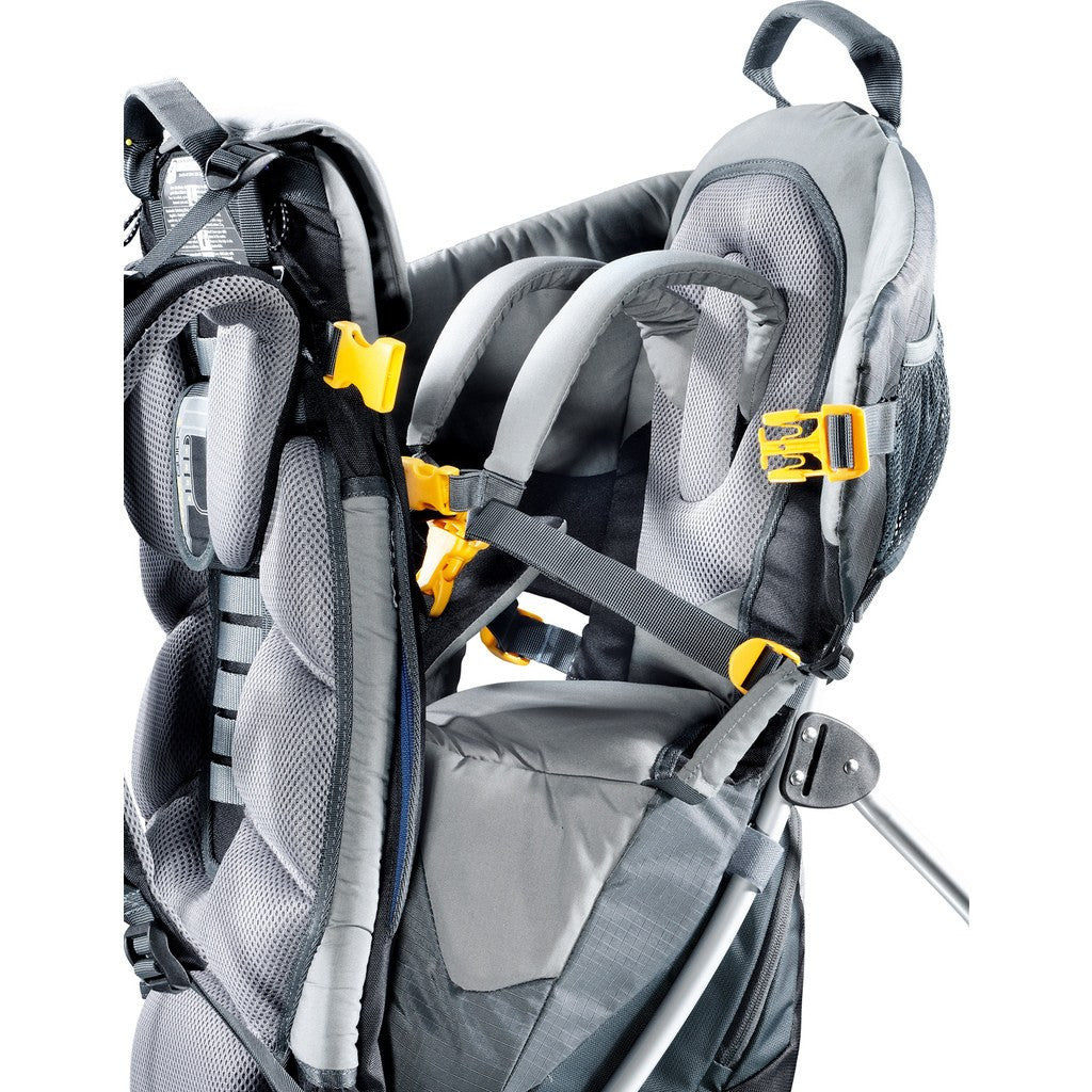 Over-engineered for safety and comfort since 1996, the Deuter Kid Comfort 1 Child Carrier makes the outdoors, whether urban or wild, more accessible than ever. Effortlessly adjusted, it adapts to children of all shapes and sizes, offering unique conveniences like side entry and exit, chin pad, extensive storage, and of course - safety and stability for both the carrier and rider. Load up and head out to find adventure - excuses are a thing of the past.