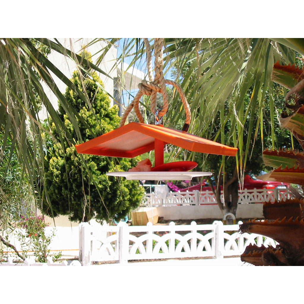 Innovation meets simplicity to bring you the Orange Porcelain Plate Birdhouse. Made with a soft polyurethane roof and small porcelain dish, this birdhouse boasts a unique and adorable aesthetic. Improve the etiquette of the birds in your neighborhood, by letting them eat off a porcelain plate!