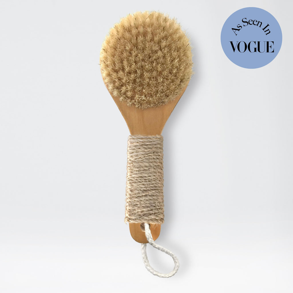 Our Dry Brush is composed of grass tree wood, all-natural bristles, and finely wound hemp twine around the handle. The ancient practice of dry brushing improves circulation from head to toe and exfoliates the top layer of skin for a brighter, firmer surface all over. The skin is left invigorated from short, quick strokes of the soft bristles across the entire body, including arms, legs, and torso. The Dry Brush Measures 8” long x 3” wide and is 1 ⅛” thick.