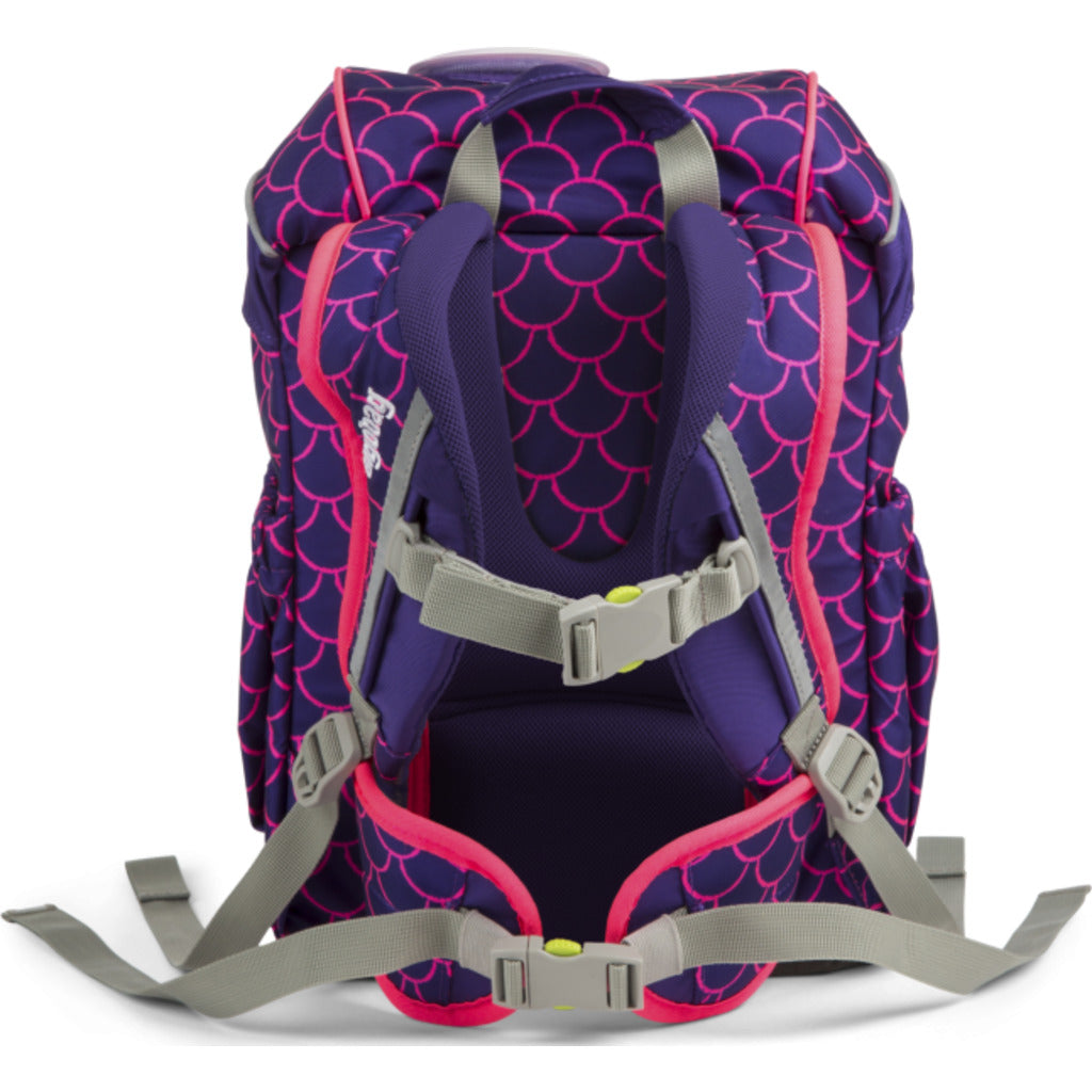 The Ergobag Mini Rucksack Backpack in Pearl DiveBear is a Special Lumi Edition bag. Perfect for children ages 3-5. With plenty of room for everything your little one needs as they go off to preschool or kindergarten for the first time. Ergonomically designed, this pack will support good posture. It features a chest belt and a padded hip belt for added comfort that redistributes the weight to the stronger pelvic area. The buckles are easy for little fingers to open and there is plenty of room inside to pack a water bottle, lunch, and a favorite stuffed animal. There are also two pockets on the outside of the backpack. The fabric is made out of 100% recycled PET bottles and has some reflectivity to keep your child visible.