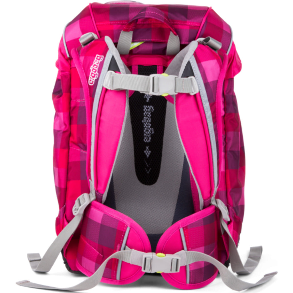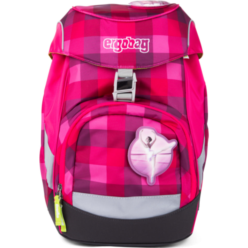 This PrimBear Ballerina Prime Rucksack Backpack from Ergobag is the perfect bag for children as they start off their school career. The PrimBear Ballerina Backpack was created with the ergonomics of a hiking backpack in mind, including a hip belt and chest belt to distribute weight and support good posture. The padded hip belt takes the weight away from the shoulders, placing it on the stronger pelvic area. To prevent your child from growing out of their backpack too quickly, a stabilizing aluminum frame can be adjusted for different heights. An interior pocket holds their books close to their backs to decrease the leverage effect, and a front pocket with a magnetic buckle allows for easy access to a water bottle or lunch box. Reflective fabric ensures visibility for safety, and four feet on the bottom of the bag protect the contents. Finally, the fabric is made of 100% recycled PET bottles so your little ones can get started early on saving the planet.
