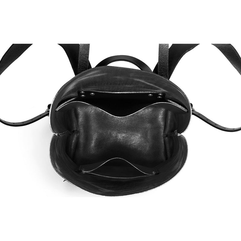 For a weekend getaway or daily work routine, Ezra Arthur's Keystone Rucksack backpack in Jet & Nickel is refined and crafted to perfection with heirloom quality to last a lifetime. A roll-top backpack design with Horween's Chromexcel full grain leather and Brass hardware that will last and never run out of style. Versatile and convenient, the Keystone features a large interior pocket with ample space for a 15-inch laptop and a smaller inside pocket to keep possessions within reach. A hidden front zipper and quick-release snaps on the top allow for easy entry without unbuckling the hardware. The roll-top nature of the backpack allows you to expand its capacity to suit your needs, making it the ideal carry good in any situation. Additional reinforcement with thick harness leather straps and ironwood skates to protect the bottom of the bag & allow it to stand upright. The leather is formulated to be durable, smooth, supple, and provide scratch-resistant properties. Bring the Keystone Rucksack to every adventure and watch it age beautifully over time for many generations.