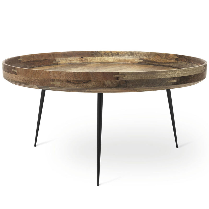 The Mater Bowl Table reconciles old Indian craftsmanship with the simplicity of Scandinavian design. The table top, made of sustainably sourced mango wood is turned on a lathe, showcasing the skill of Kharadi, an Indian wood turning community and supporting their local craftsmanship. The Bowl Table can stand alone or be paired as a side table vignette. The finish used on the table top is a lead-free, water-based PU lacquer. The legs are made of milled hollow steel rods and can be detached for ease of labour and transportation.