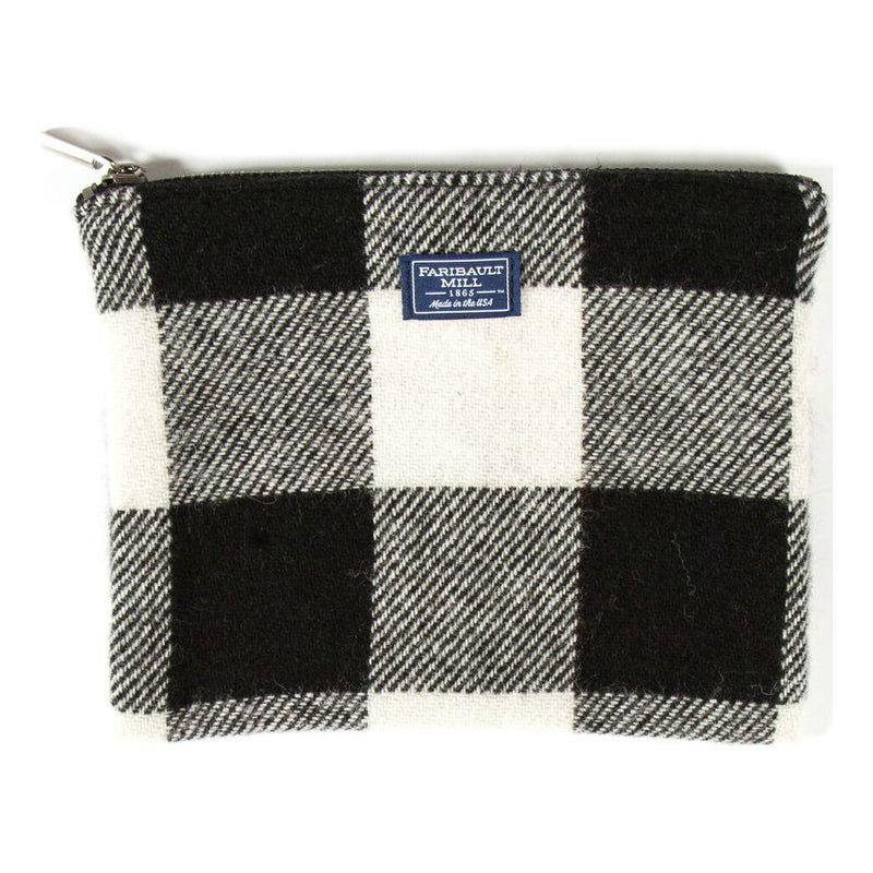 Faribault wants you to stay organized with the Buffalo Check Large Pouch in White and Black. Pair it with the Buffalo Check Tote Bag or throw it in your purse. It makes a great makeup bag or a small accessory bag for traveling. This pouch has a zippered closure to keep your items in place.
