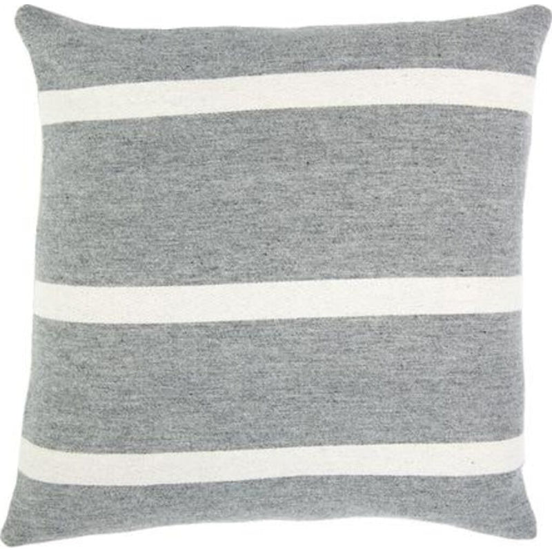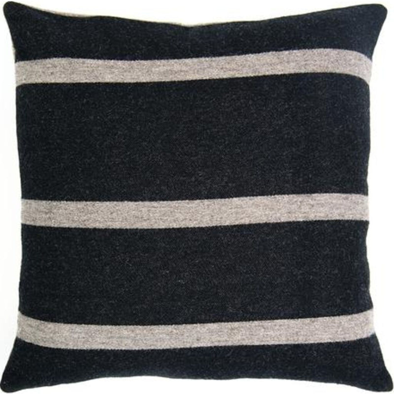 Faribault Reversible Framed Pillow Cover is oversized, big on style and comfort too. Big and bold, these striking pillows are at home on the bed, couch or floor. The distinctive striped pattern reveals different colors on the front and back. The perfect combination of merino wool and a touch of cotton gives them a comforting softness. They come with an invisible zipper closure and the pillow insert is included.