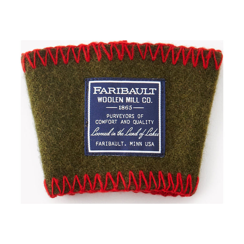 Faribault repurposes the remnants of their blanket ends into function and stylish Coffee Cup Sleeves. This sleeve is crafted out of green wool with red stitching. Made out of 100% wool, your coffee will stay warm while your hand stays comfortable. This makes a perfect gift for any coffee or tea lover!