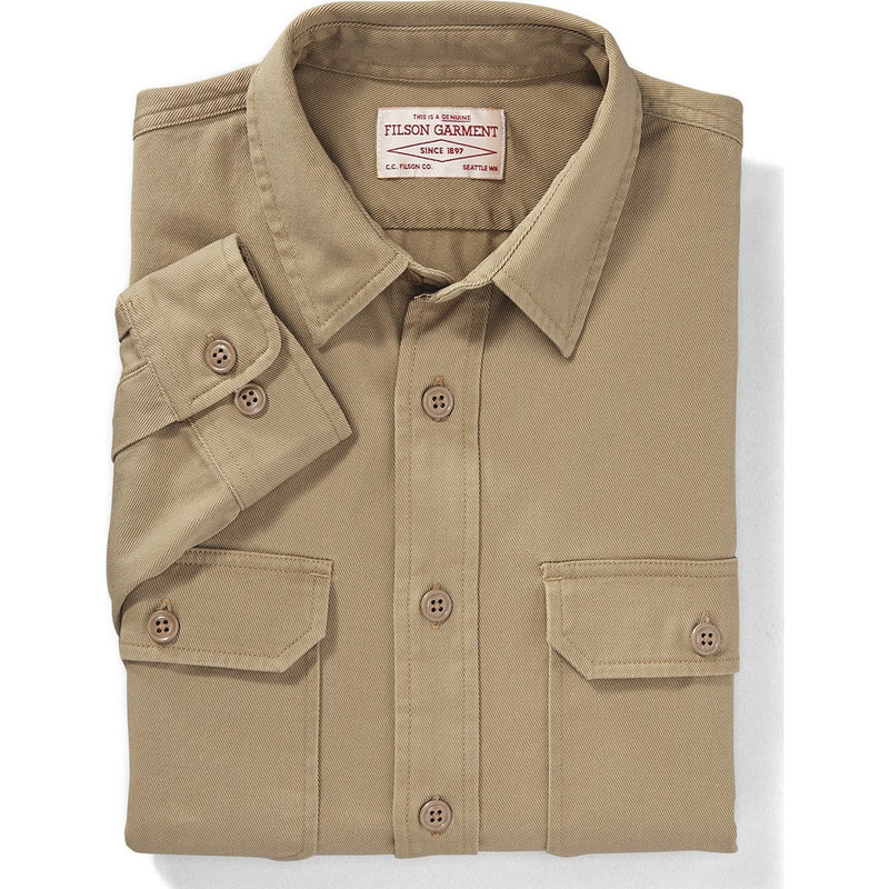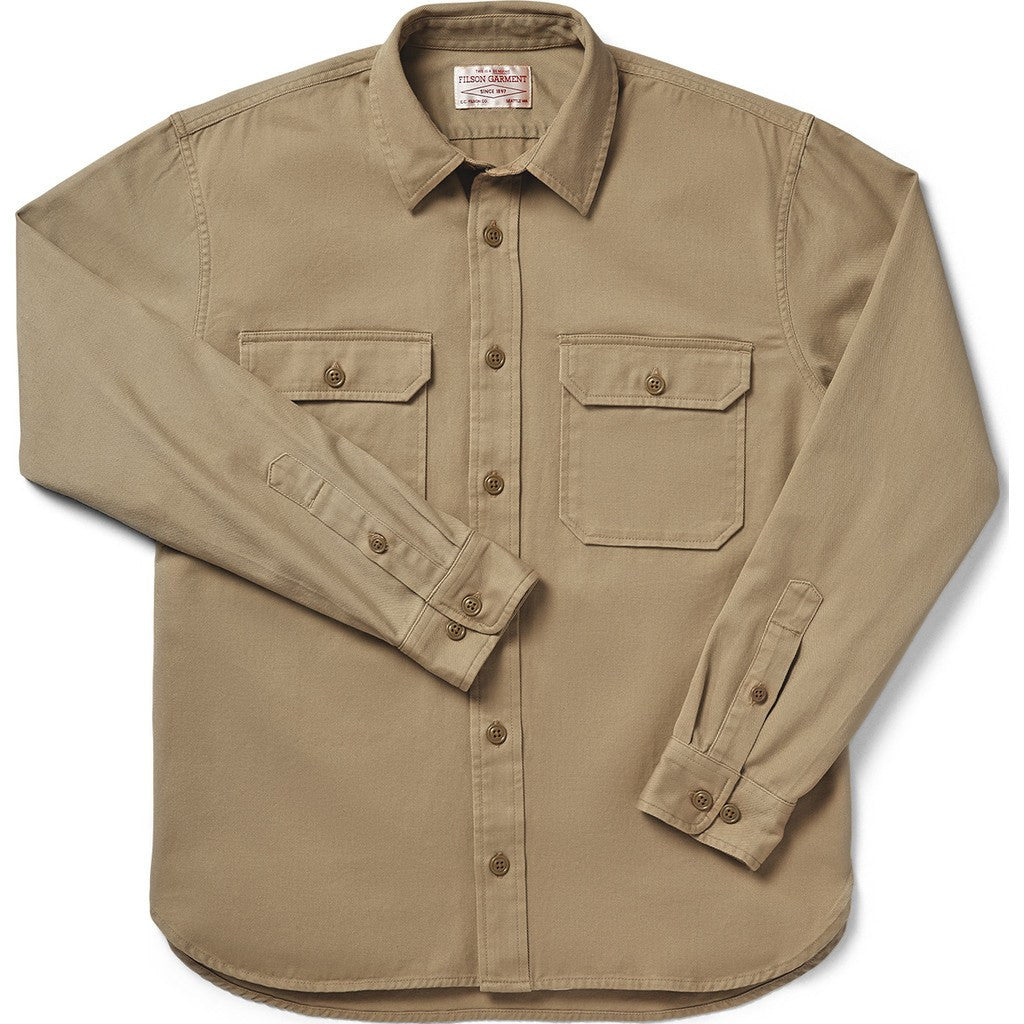 The 6-Oz Drill Chino Shirt in khaki from Filson is designed for durable comfort and functionality. Crafted from breathable cotton twill, it is pre-washed to maximize softness and provide that vintage feel. This medium-weight button-up is designed with military-grade melamine buttons and the shoulders are cut to endure even the most rugged activities.