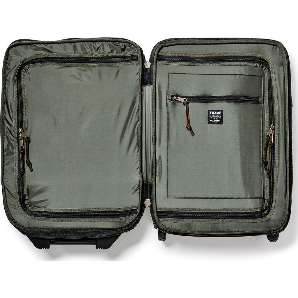 The Ballistic Nylon Dryden 2-Wheel Carry-On Suitcase in Otter Green is built with abrasion-resistant nylon for years of light and reliable travel. Sized to meet major US airline overhead bins and an 22" extendable handle allows easy transport to your destination. Double layer and compression straps keeps contents secure and extra protected. Look fly for any type of trip!