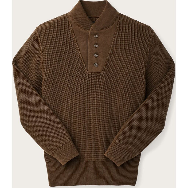 Knit with midweight 7-gauge 100% cotton from the Peruvian Highlands renowned for its softness and durability. Midweight, with a stretchy half-cardigan stitch, allowing for a full range of motion - the Filson Cotton Henley Guide Sweater features a 4-button front placket that vents heat effectively and a standing collar that will protect your neck from the elements.