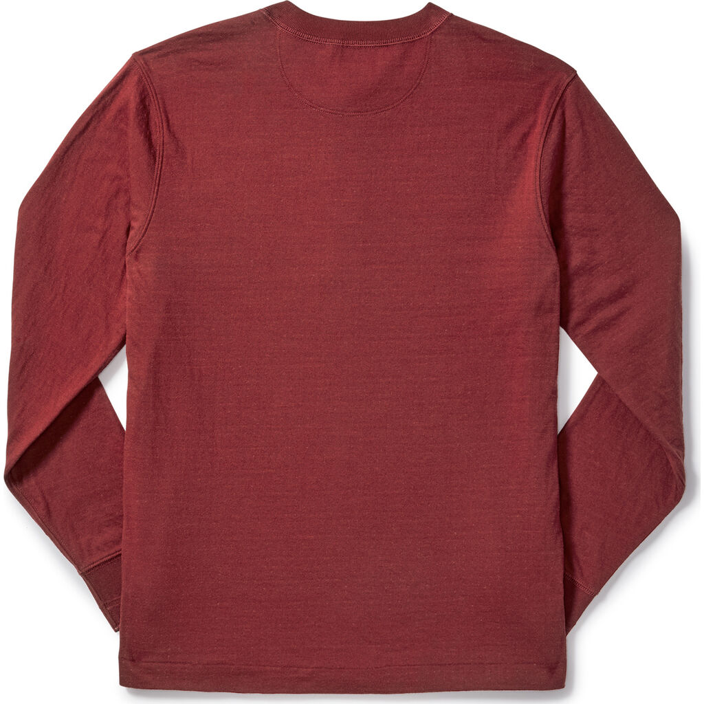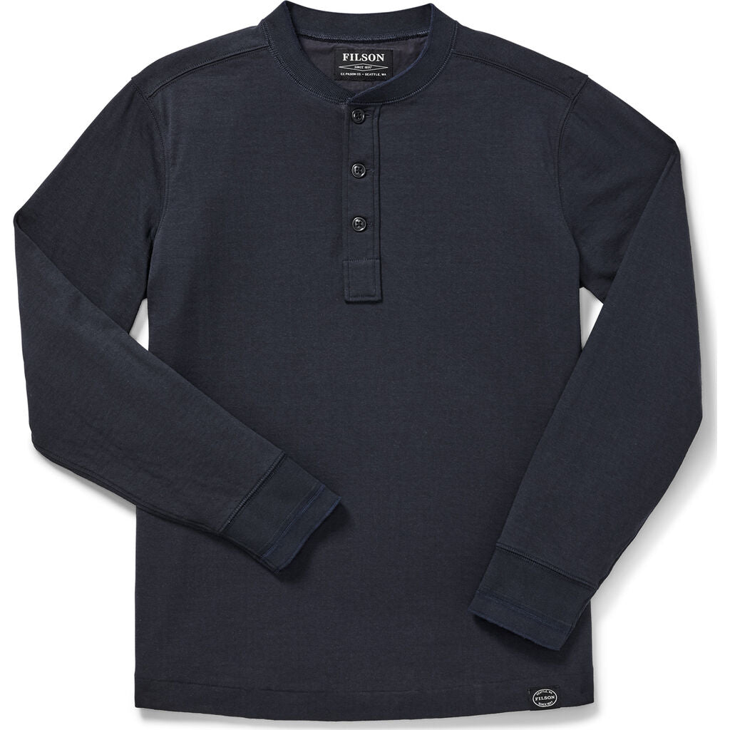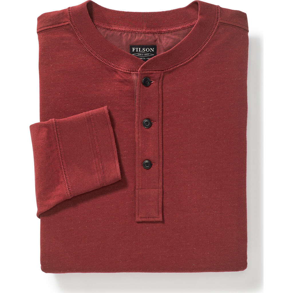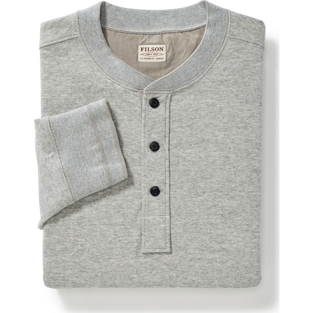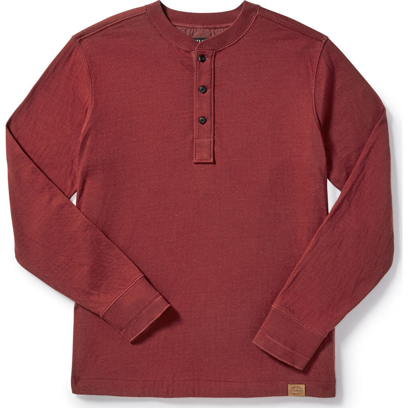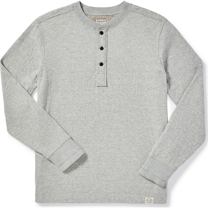 Filson Double-Layer Henley is a midweight shirt that can be worn on its own or as a base layer in cold weather. Made of a double-knit, sandwiched jersey fabric, it traps body heat to keep you warm. A three-button placket makes it easy to help regulate your body temperature.