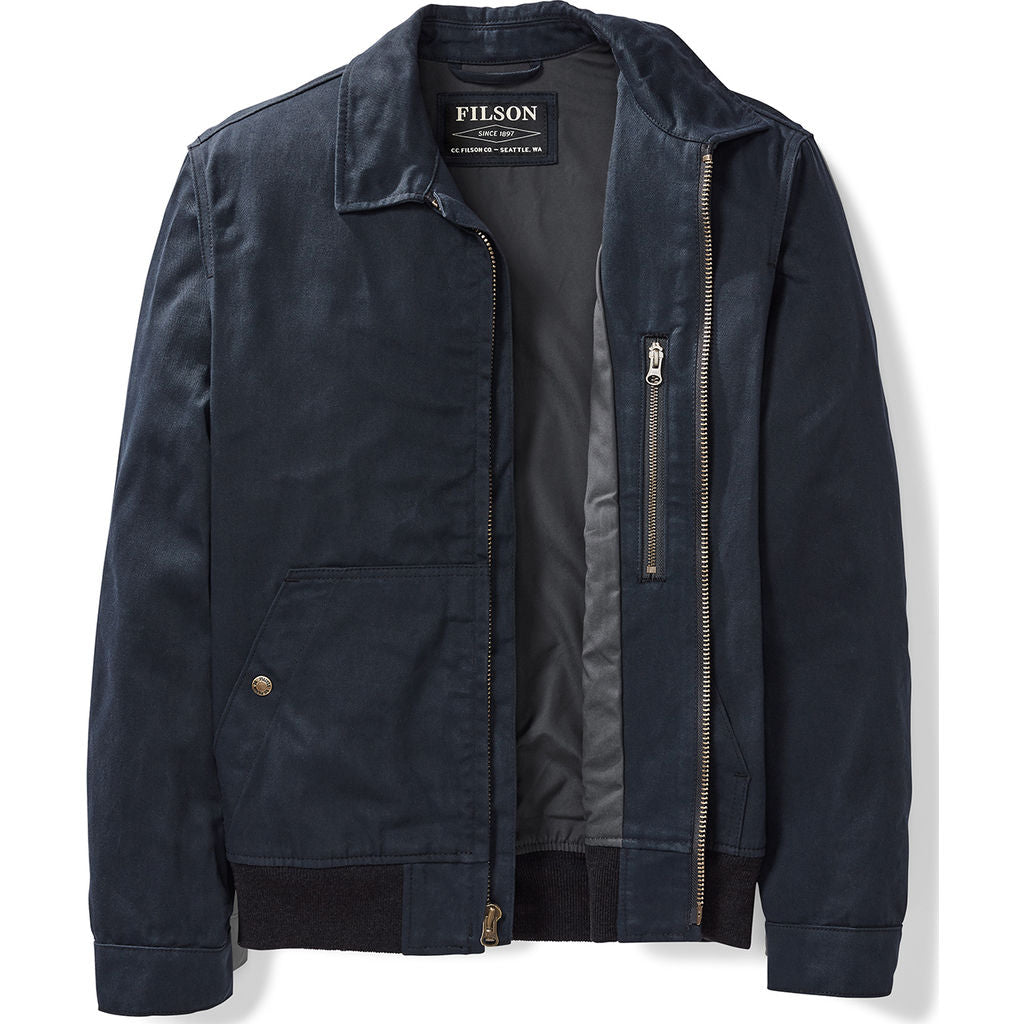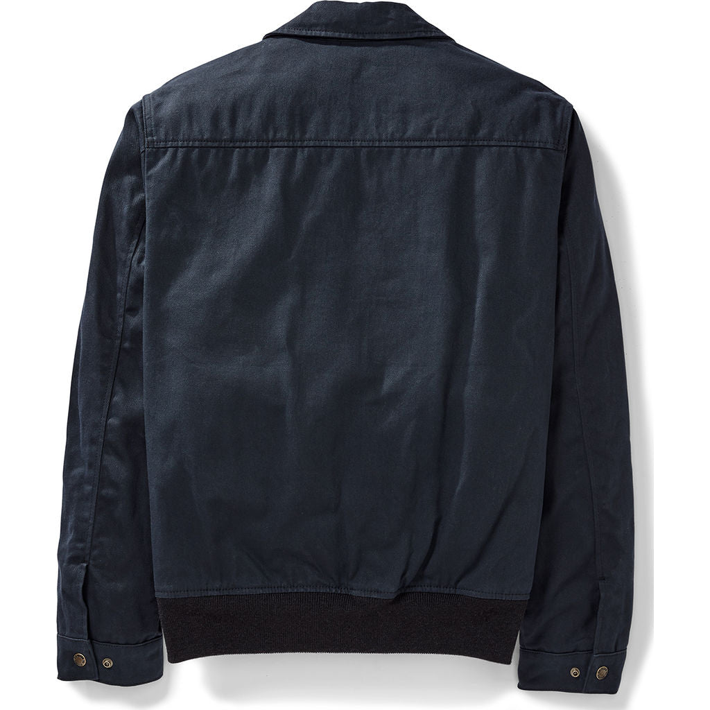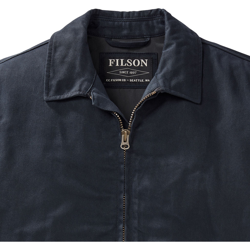The Filson Dusk Navy Dry Wax Work Jacket is built to help you get the job done. Designed with a hip-length cut for mobility and easy access to your favorite tool belt. Made with a rugged, water-repellent dry-waxed shell and lined with our Cover Cloth. No matter what you have to do this durable jacket will help you get the job done faster.