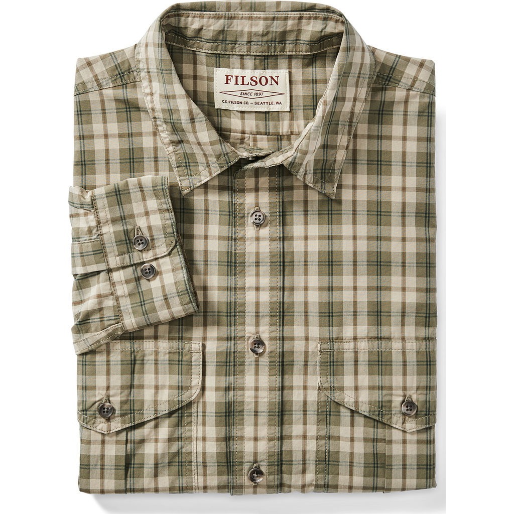The Olive Khaki Feather Cloth Shirt from Filson is perfect to wear for work or everyday. It makes a perfect travel companion because it is lightweight and packable. Pre-Washed to reduce shrinking, you will instantly love this versatile shirt.