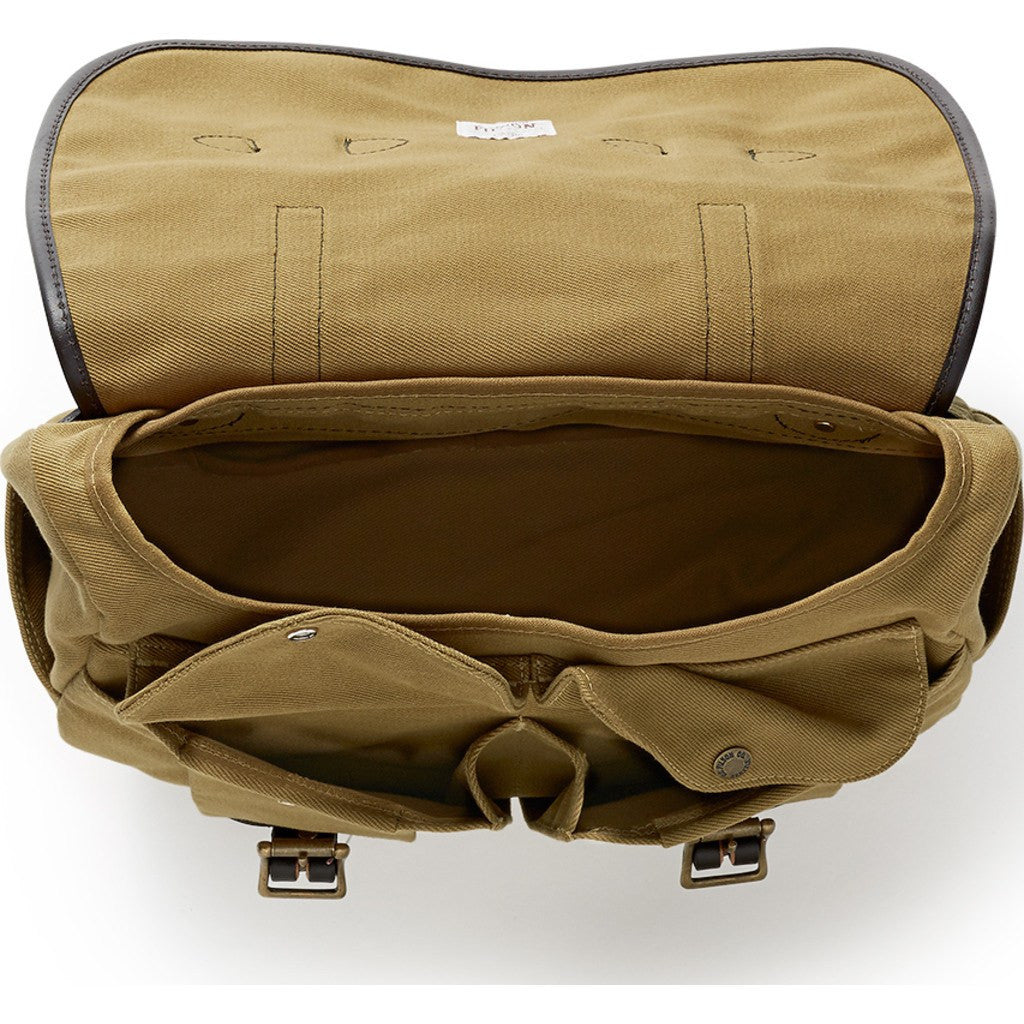 Filson's Medium Field Bag is designed to accompany you and protect your belongings out in the field, in the toughest conditions, facing severe stress. A saddle-grade Bridle Leather buckle-closure storm flap and reinforced base provide multiple avenues of added protection, ensuring your things remain untouched. A removable and adjustable leather shoulder strap lets you customize the carrying and style of the bag. Make sure you're prepared when you go out into the field with this bag.