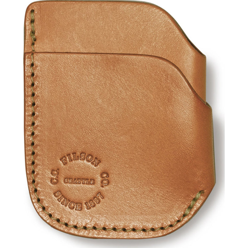 The easy slip Filson Front Pocket Cash & Card Case in Tan is quick and convenient way to store your money and cards on the go. Made with vegetable-tanned U.S. Bridle Leather with two card pockets and one cash or card pocket. Simple addition to your slim wallet or perfect wallet for the most minimalist person.