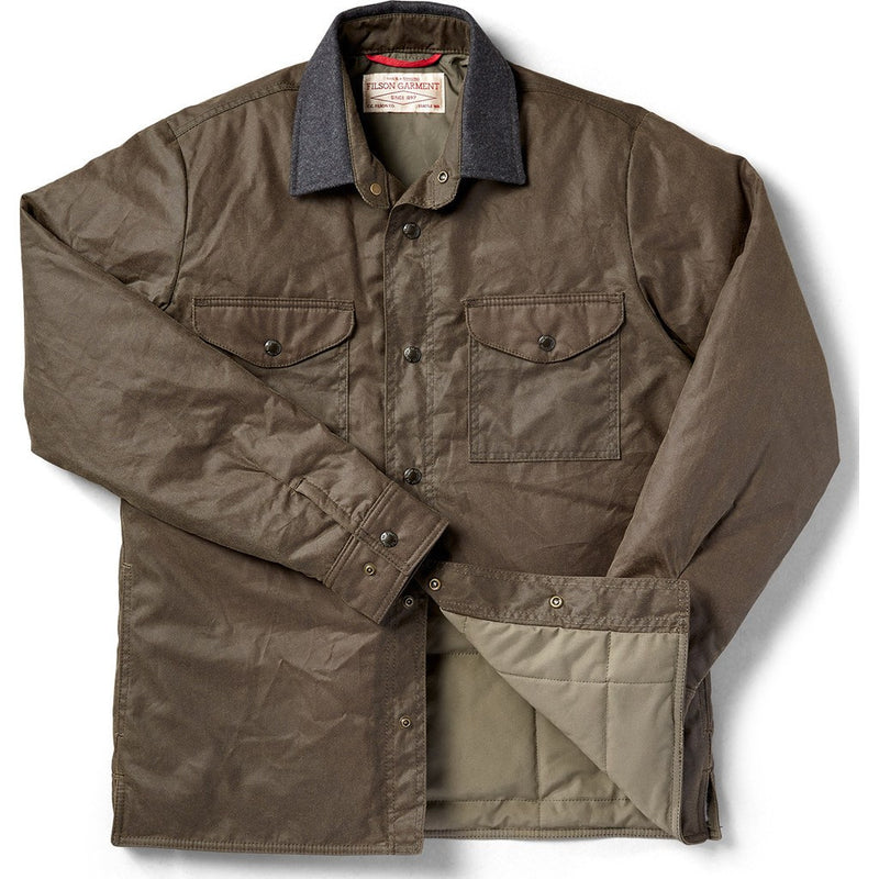 Filson's Insulated Jac Shirt is crafted from water-resistant Cover Cloth with a generous cut so you can layer comfortably. This outer layer shirt has lightweight insulation for retaining body heat without weighing you down, allowing for maximum mobility. The sleeves and body are lined with dry-finish Cover Cloth to help with easy on/off over layers, while the snap-front closure helps keep the wind and rain out and can be easily maneuvered even with gloves on.