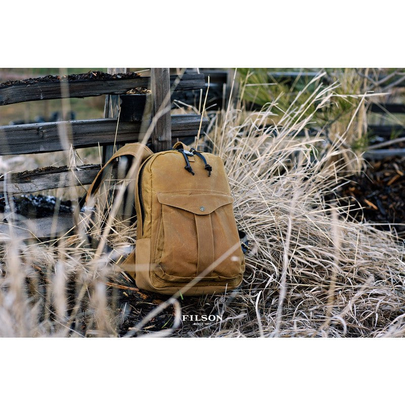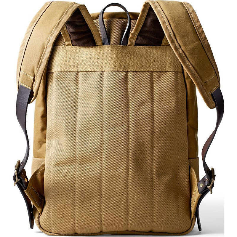 Look like the worldly traveler you are with the Filson Journeyman Backpack in Tan - subtly stowing your business laptop. The rectangular design provides maximum storage space, while the fully padded interior offers ample protection. A shoulder strap adds carry convenience, pockets for a pen and a cellphone are provided, and grommets in the exterior flap ensure drainage if needed.